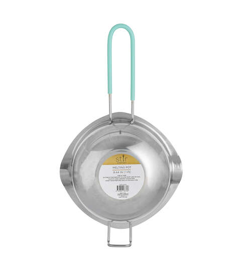 Use this stainless steel melting pot to melt chocolate, butter, candy, and more. The dual spouts make pouring easy, and the silicone handle protects your hands. This pot also comes with a front hook, so you can use it as a double boiler insert.