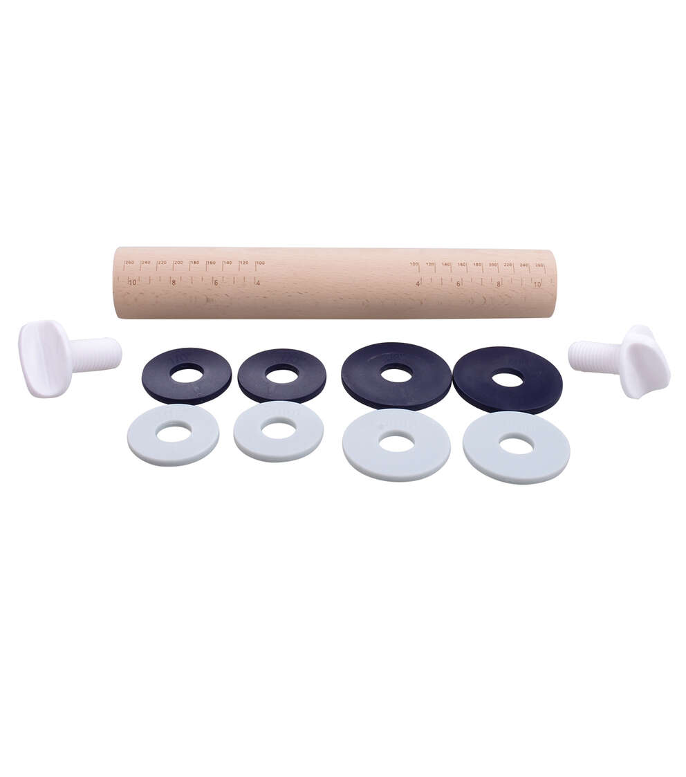 - Adjustable thickness. Include 4 sizes of removable disks for desired thickness of pastry or dough (1/16in, 1/8in, 1/4in, 3/8in)