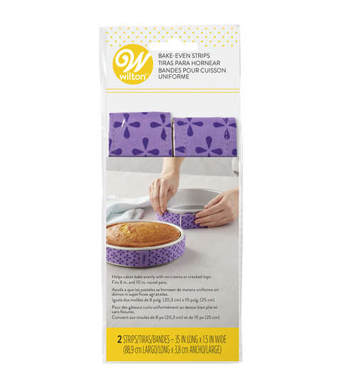 WILTON-Bake Even Strip Set. Bake moist; level cakes every time with no crowns; cracked tops or crusty edges! This package contains two 35x1-1/2 inch long strips. Imported.