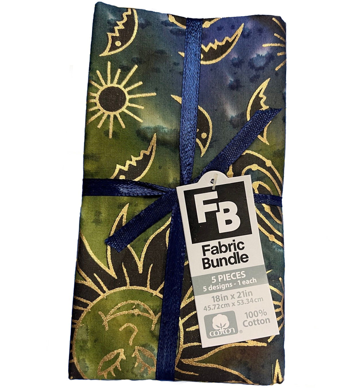 5pc Celestial Cool Batik Metallic Cotton Fabric Quarter Bundle