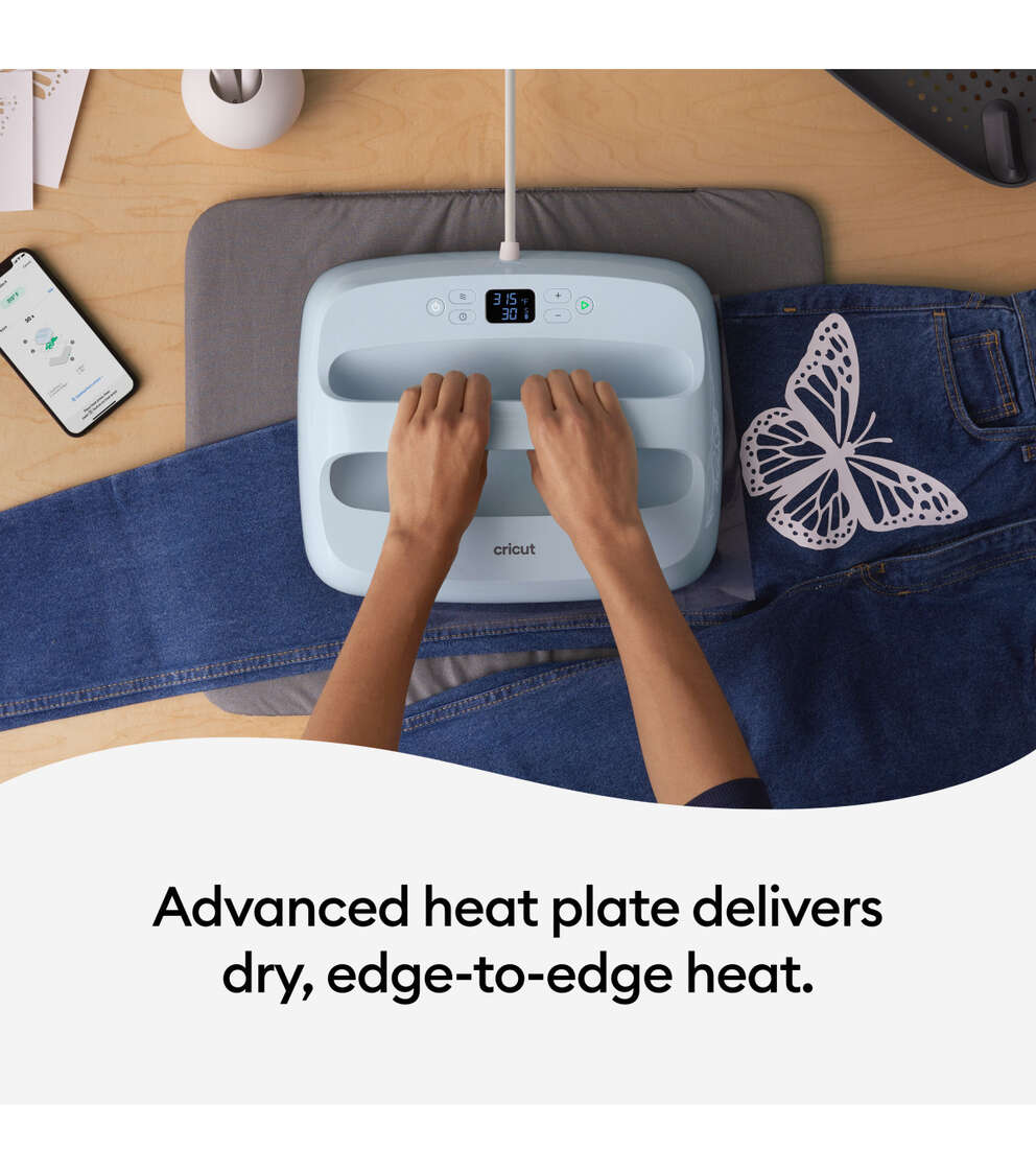 The perfect press is now on tap. With Cricut EasyPress 3, you can press without the guesswork, and get simple, easy transfers for almost any project. Send precise time and temperature settings through Bluetooth connection via the Cricut Heat app. Follow on-screen, step-by-step prompts that guide you at every turn. The ceramic-coated heat plate reaches temperatures up to 400ºF (205ºC) of dry, even heat. Press with peace of mind as safety features like an insulated safety base & auto-off provide a worry-free experience. Plus, it’s lightweight, compact, and compatible with major brands of iron-on (HTV), Infusible Ink & sublimation products. A perfect complement to Cricut cutting machines. Product will not function until activated with Cricut Heat app and compatible internet-connected mobile device.