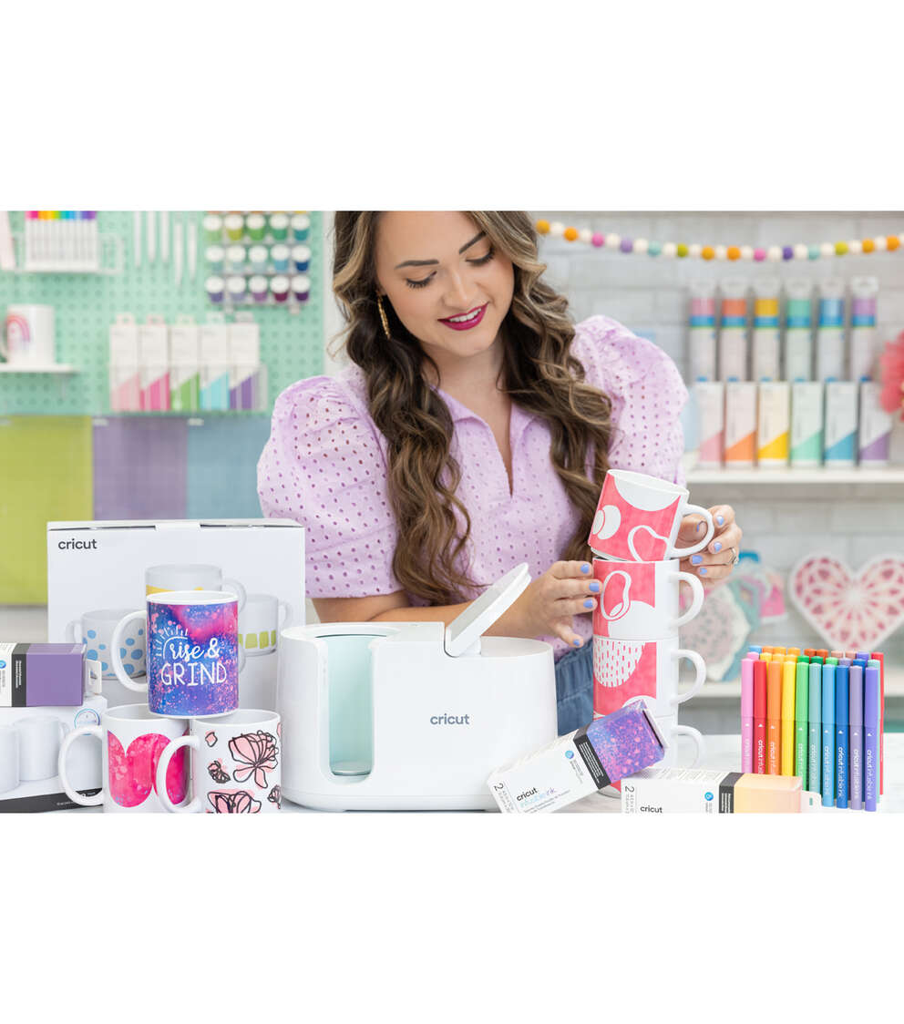 Make a mug masterpiece in minutes with Cricut Mug Press. Just create your design using Cricut Infusible Ink materials, attach it to your mug, and the press handles the rest! Personalize your Infusible Ink compatible mugs with unique art, a monogram, or whatever your heart desires. It's got a patent-pending heat plate for excellent, consistent results and no manual temperature or pressure settings. Thoughtful safety features include auto-off. Perfect gifts for family, friends, teachers, neighbors, and coworkers have never been this easy. Optimized for Infusible Ink products and a perfect complement to any Cricut cutting machine. Carefully follow instructions at cricut.com/make-mugs. Adult use only. Use in well-ventilated area. Vapor emitted during heat transfer. See cricut.com/help/infusible-ink-warning For use with Infusible Ink compatible mugs, 11 - 16 oz (350 - 470 ml) straight wall only; 82-86 mm diameter mugs +/- 1 mm (3.2-3.4 in) For use with compatible sublimation mug blanks, polymer coated, 11 - 16 oz (350 - 470 ml) straight wall only; 82-86 mm diameter mugs +/- 1 mm (3.2-3.4 in)