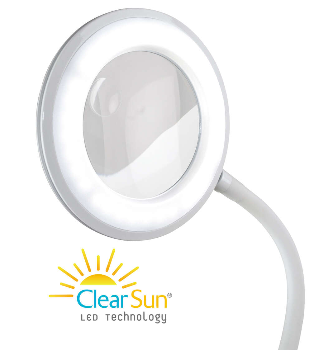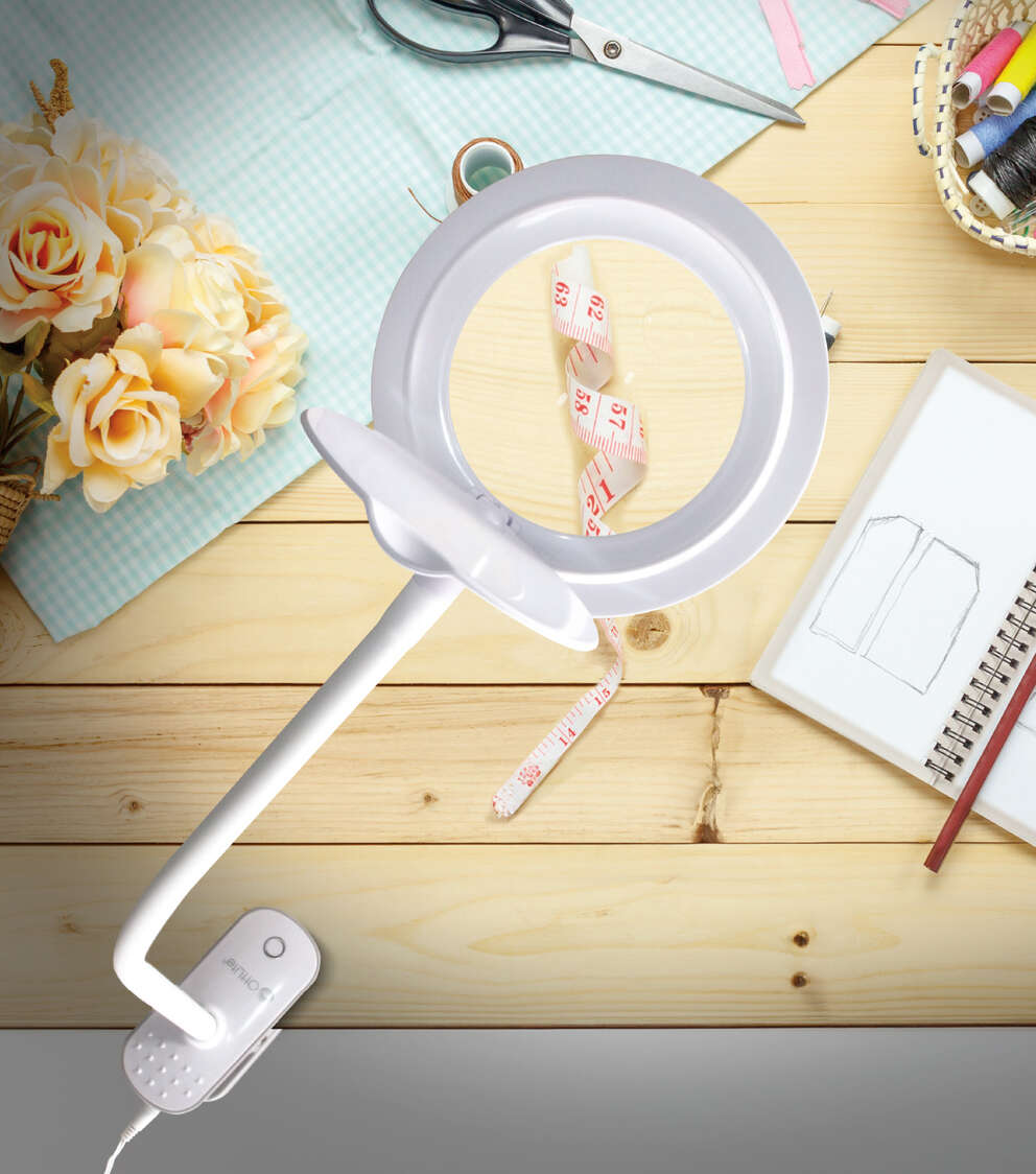 The OttLite Lighted Magnifier Clip Lamp is a lamp and magnifier all in one. The super flexible 15.5 inch neck holds position to direct light right where you need it and the sturdy clip holds tight to bookshelves, tables and more. The 3-3/8 inch, 1.75x optical-grade magnifier with a 4x spot viewer helps you see intricate details with ease and is surrounded by the natural daylight illumination of ClearSun LEDs to see colors and details clearly. The flip cover on magnifier closes to protect lens when not in use. Plus, use the touch switch to choose from three brightness levels to customize the lighting to suit your needs.