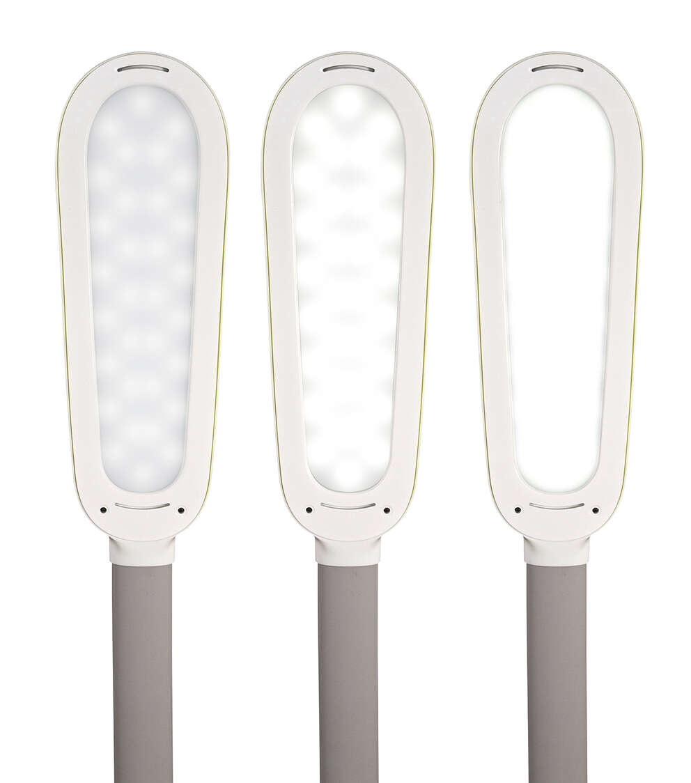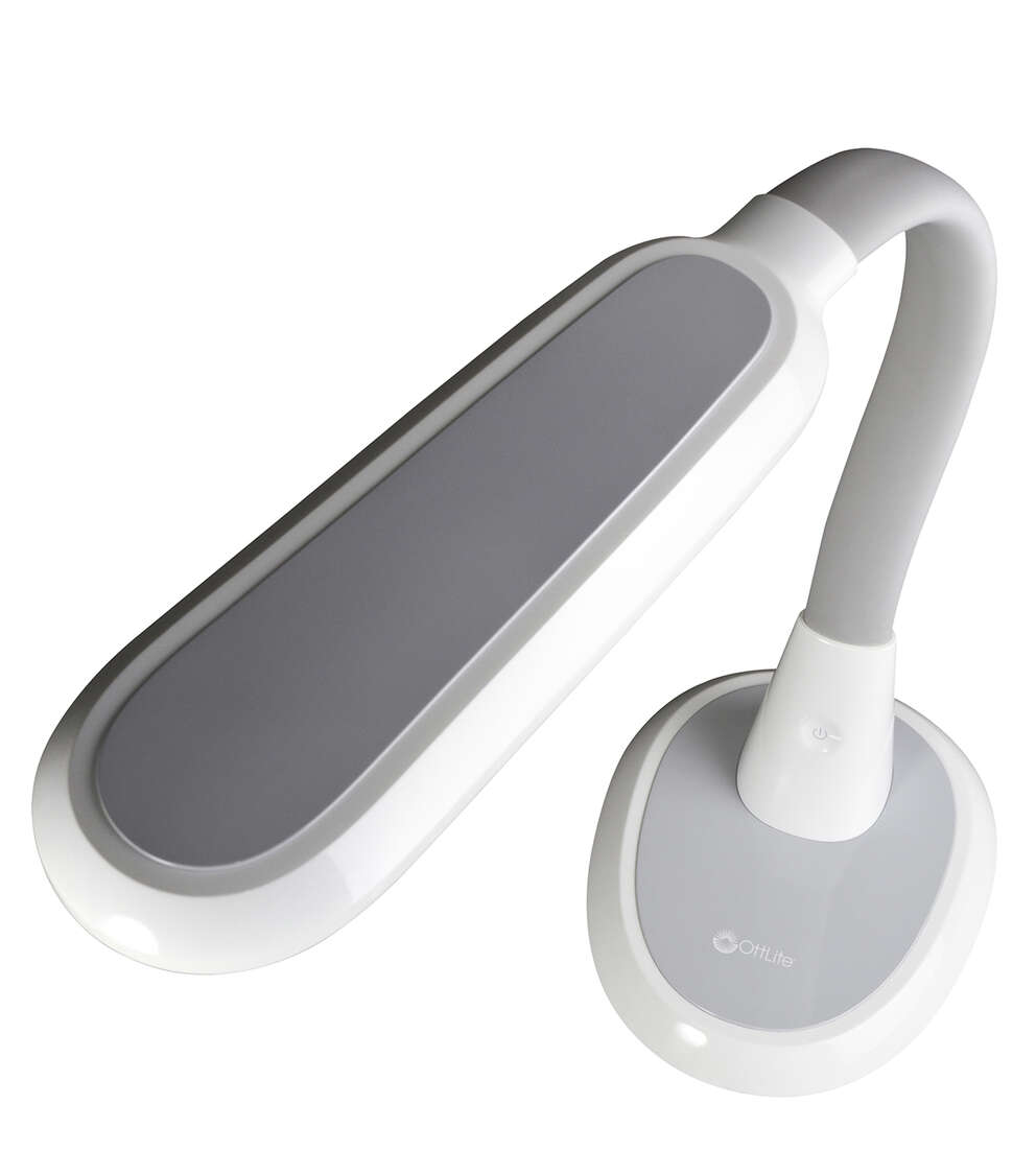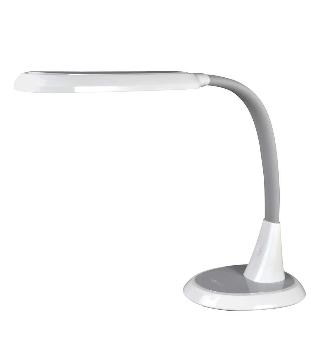 Perfect for large workspaces and big projects, the OttLiteLite Wide Area Dimmable LED Table Lamp delivers expansive ClearSun LED illumination that shows colors true to life and helps reduce eyestrain for hours of visual comfort. The wide shade measures 12 x 4 inches with three brightness levels to deliver just the right amount of OttLiteLite’s ClearSun illumination for your space. Use at full height of 27 inches to cover a large area; or bend the flexible neck down to 12 inches for focused, concentrated light, great for tracing, jewelry making and detail work. OttLiteLite allows you to see details clearly and colors accurately, helping you do what you love, longer.