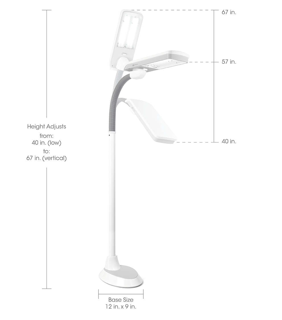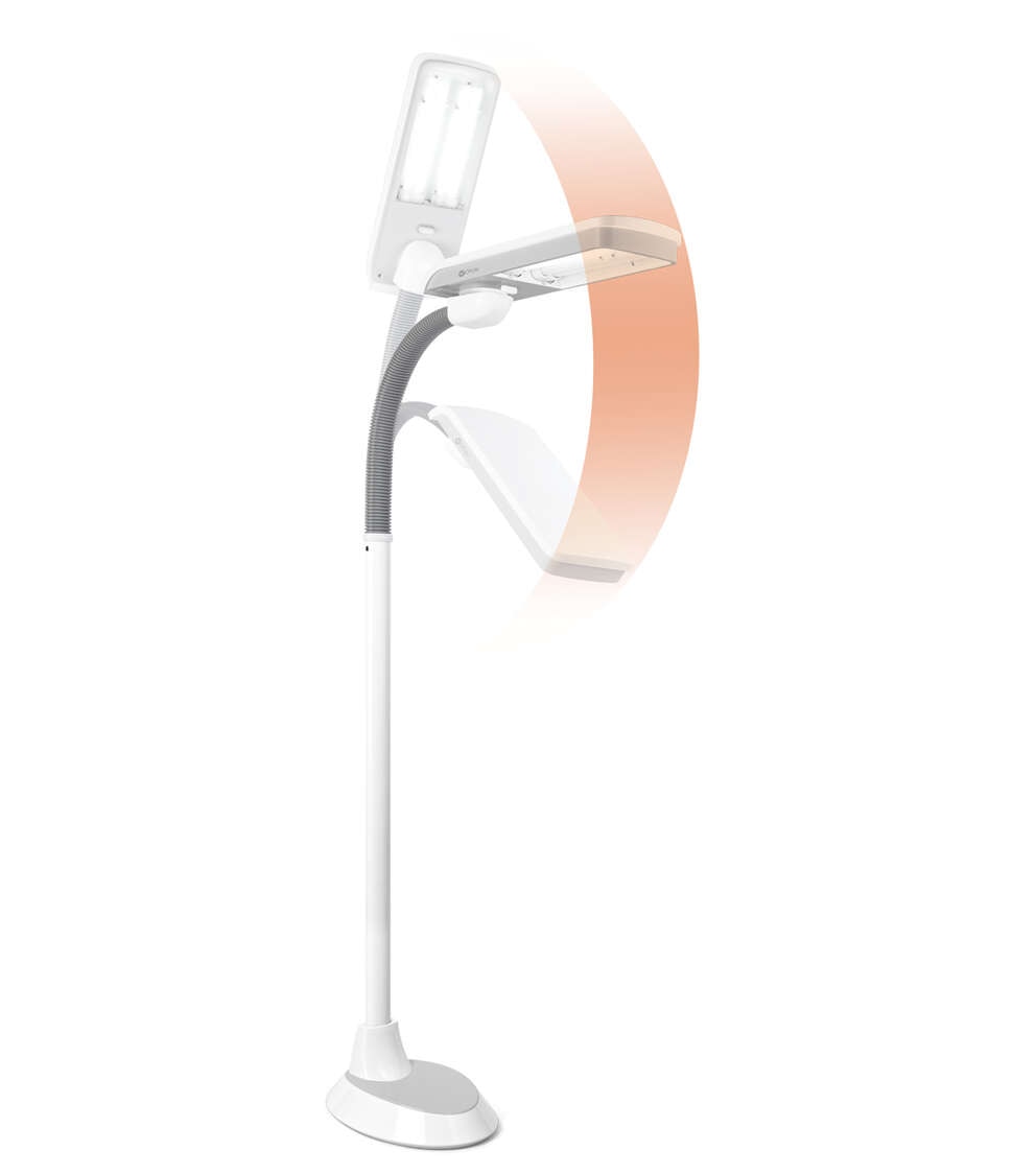 Illuminate your craft space with the OttLite 36W Floor Lamp. This 36-watt rotating shade floor lamp has two 18-watt tubes, which provide powerful illumination in a floor lamp. It also features a 45degree pivoting shade, flexible neck, and two brightness settings, which provide a wide range of lighting options. Use one or both of the tubes for the amount of light you need.