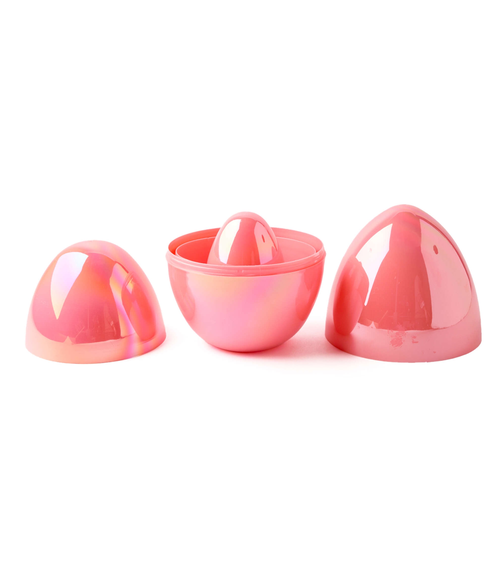 Measuring 7.09" x 7.09" x 9.84", this egg is the perfect size for displaying on a table or shelf. Whether you're looking for a fun Easter decoration for your home or office, or you want to surprise someone special with a unique and thoughtful gift, the 9" Easter Pink Metallic Nested Egg by Happy Value is sure to delight.