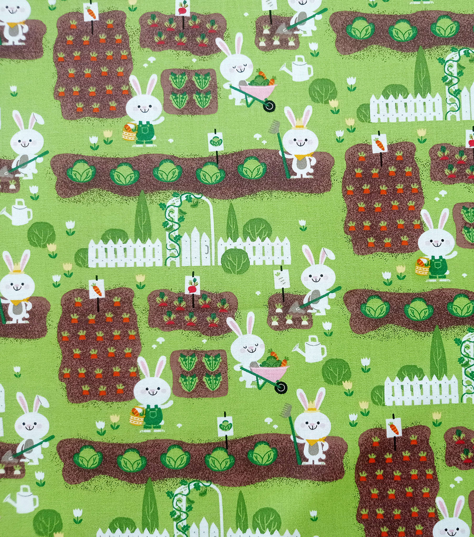 • Bunnies Gardening on Green Easter Cotton Fabric