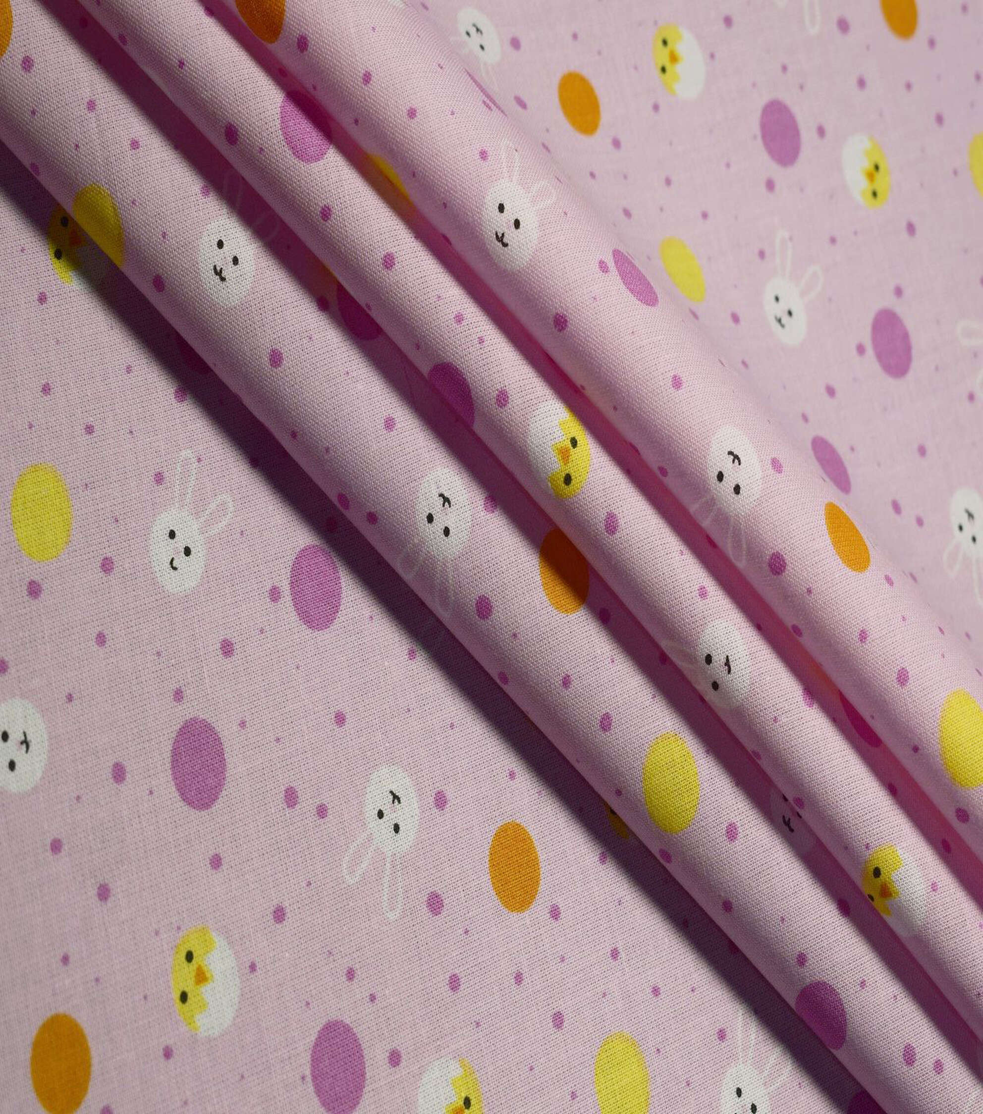 • Get Ready for Easter with Chicks & Bunny on Pink Easter Cotton Fabric