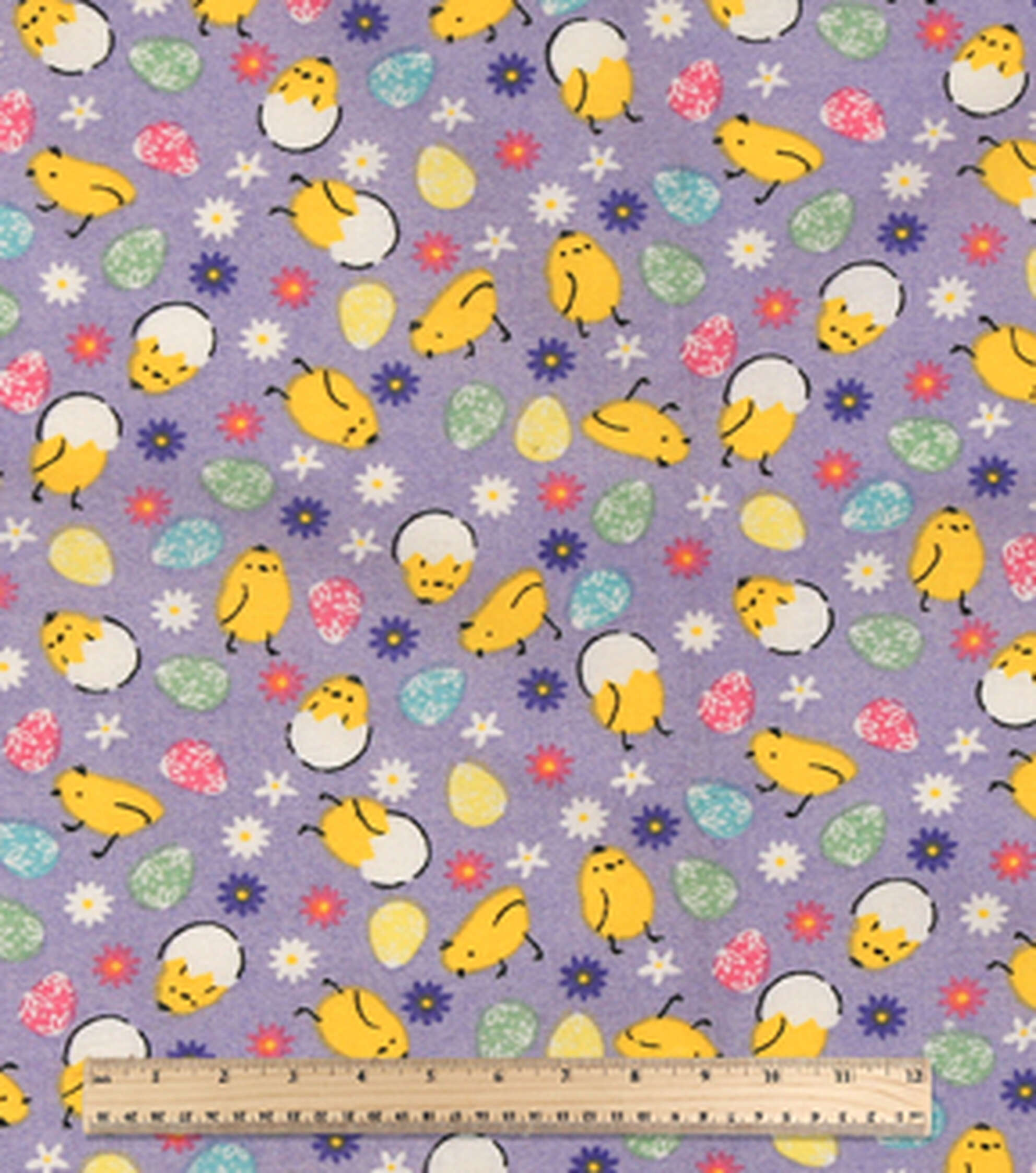 Chicks & Eggs on Purple Easter Cotton Fabric