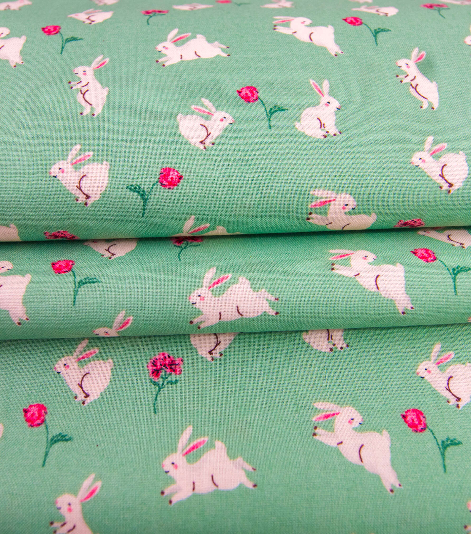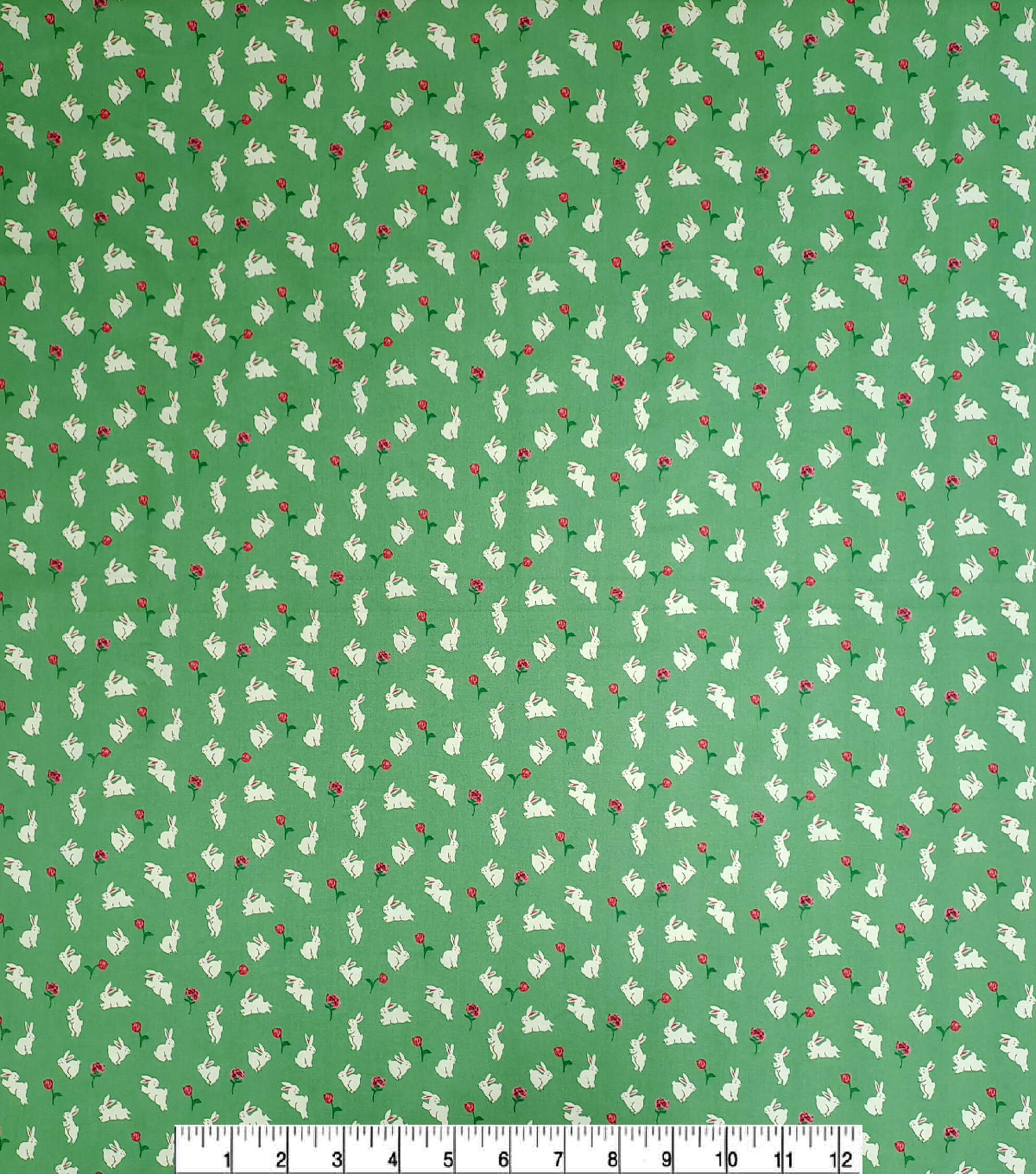 • Hopping Bunnies On Sage Green Easter Cotton Fabric