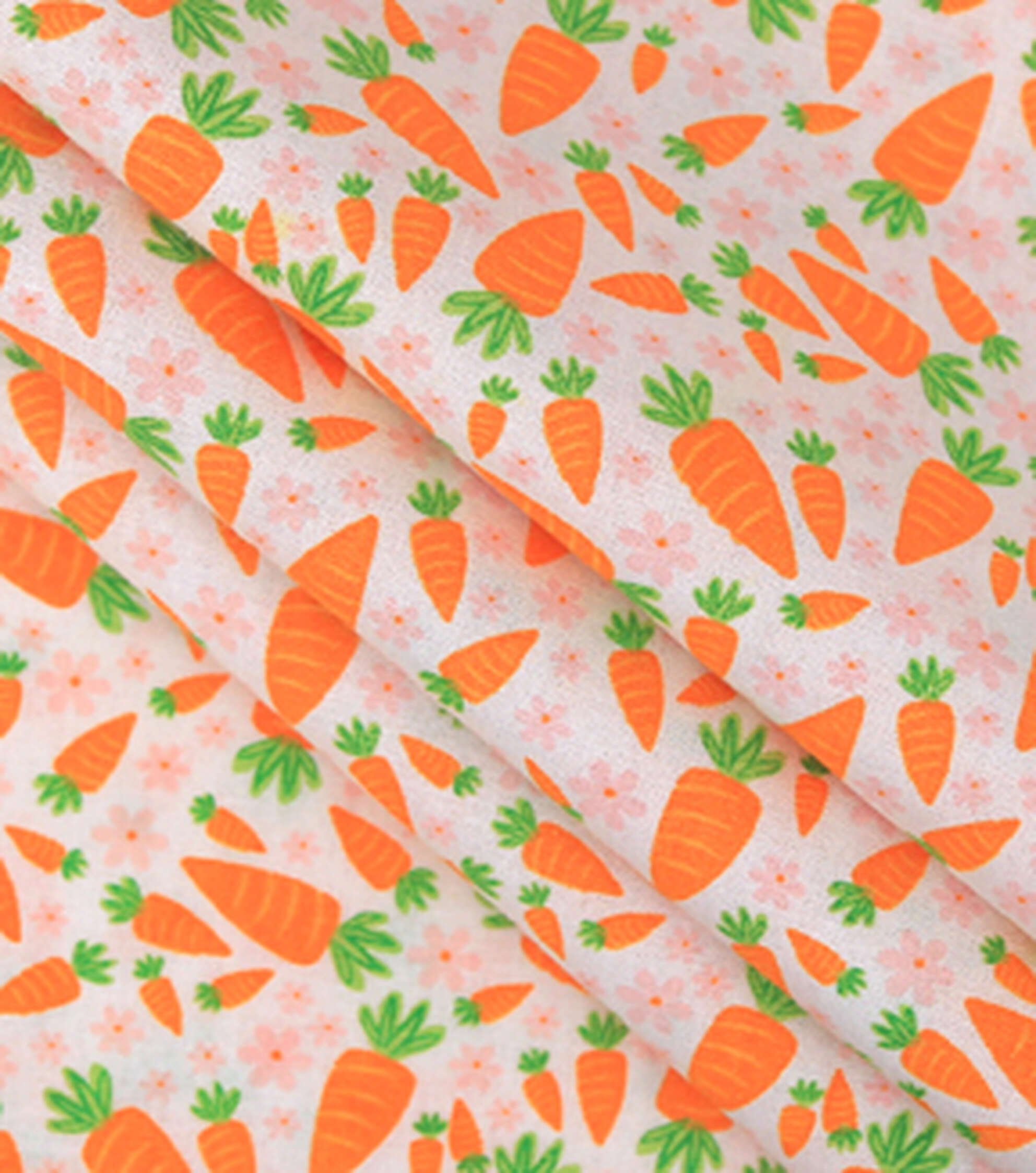 Orange Carrots & Flowers Easter Cotton Fabric