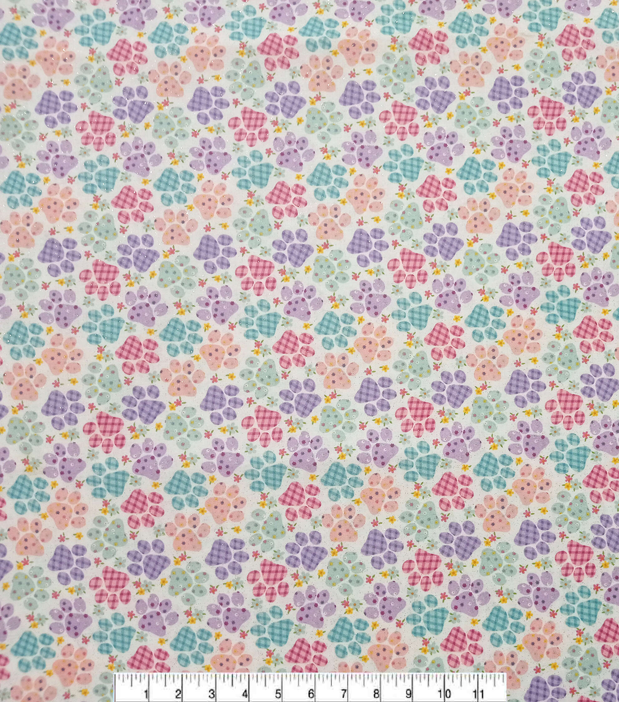 Purple & Red Paw Prints Easter Glitter Cotton Fabric
