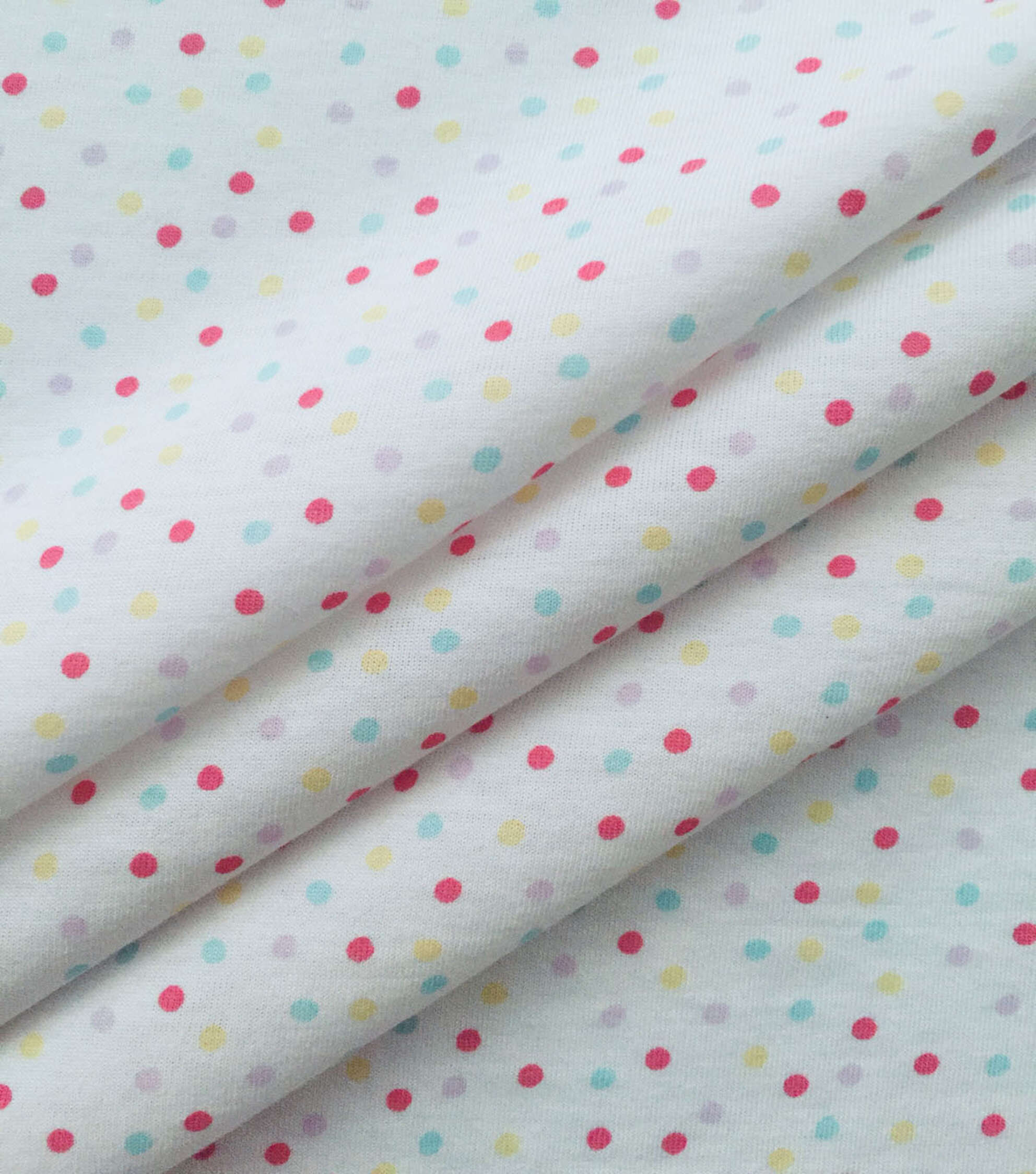 White Spring Polka Dots Jersey Knit Fabric by POP!