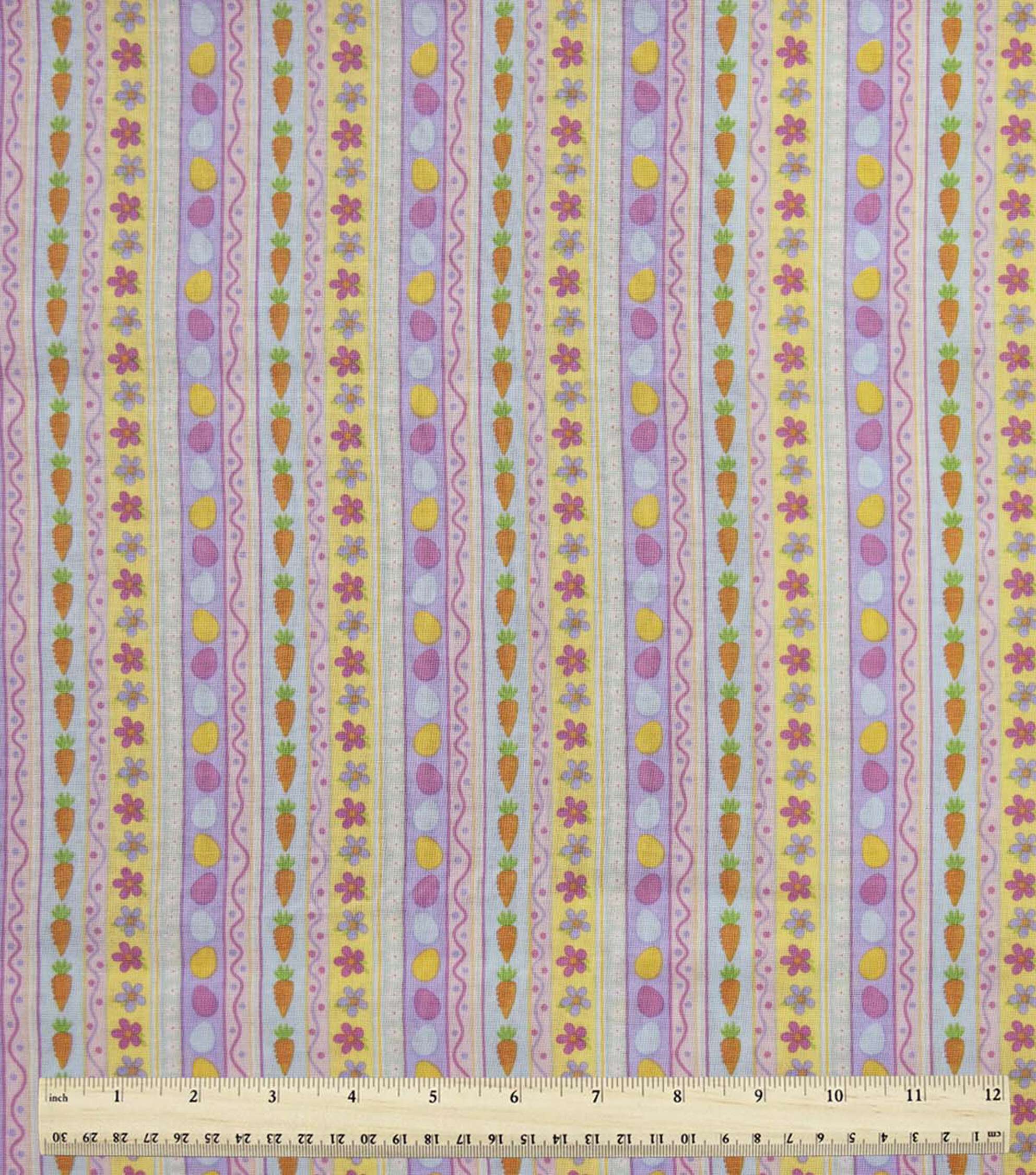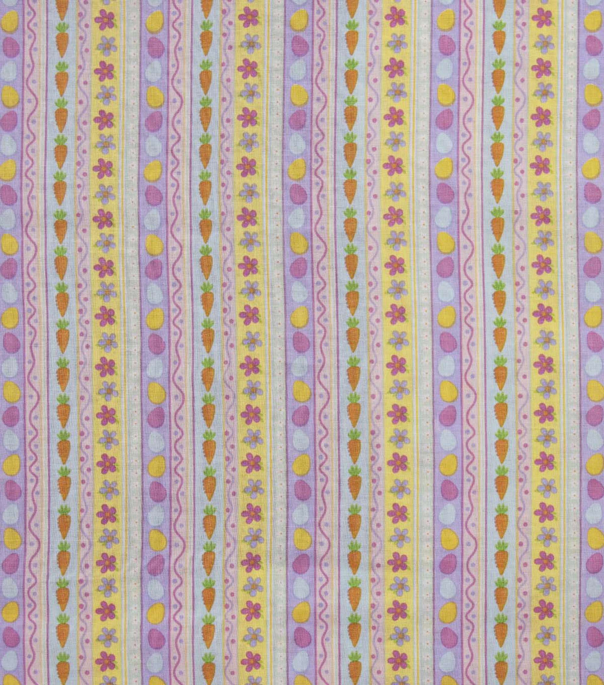 Icons on Purple & Pink Striped Easter Cotton Fabric