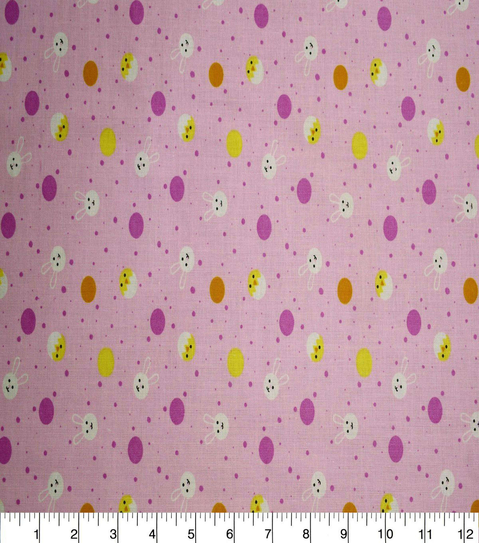 Chicks & Bunny on Pink Easter Cotton Fabric
