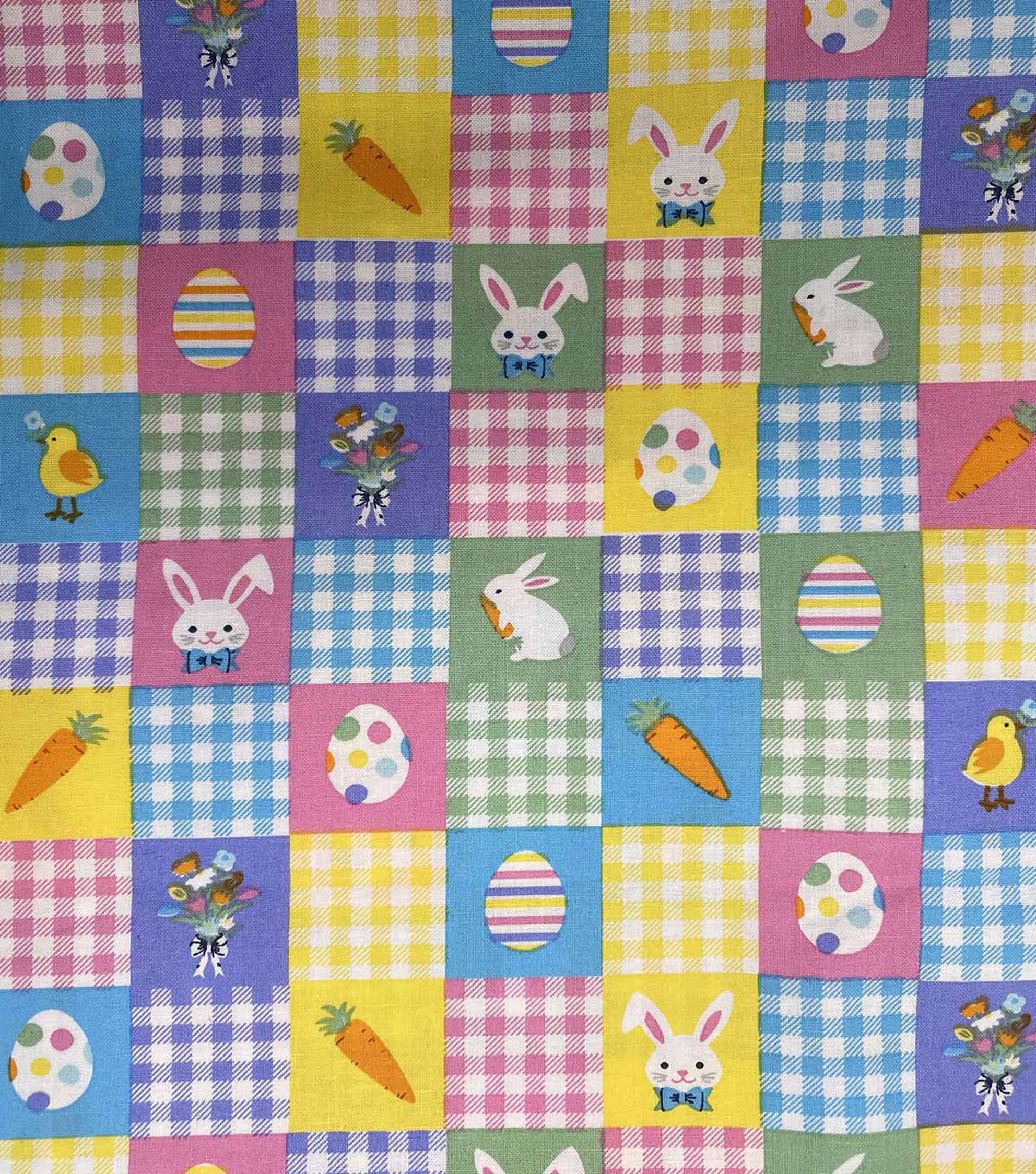 Easter Yellow & Blue Patchwork Plaid Fabric
