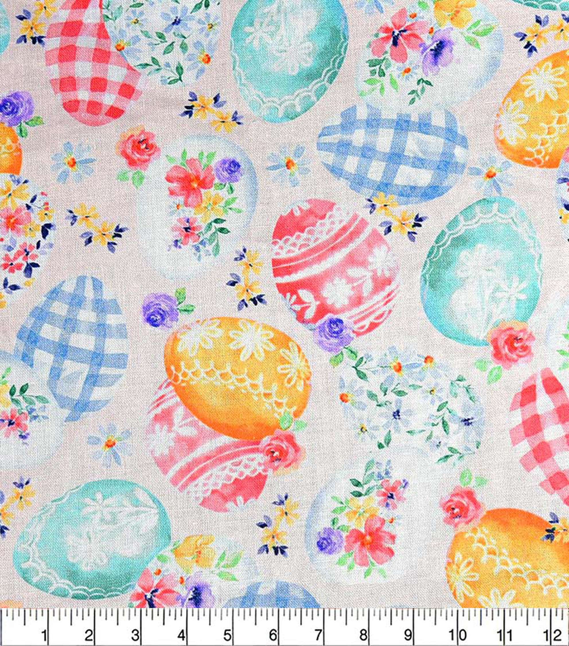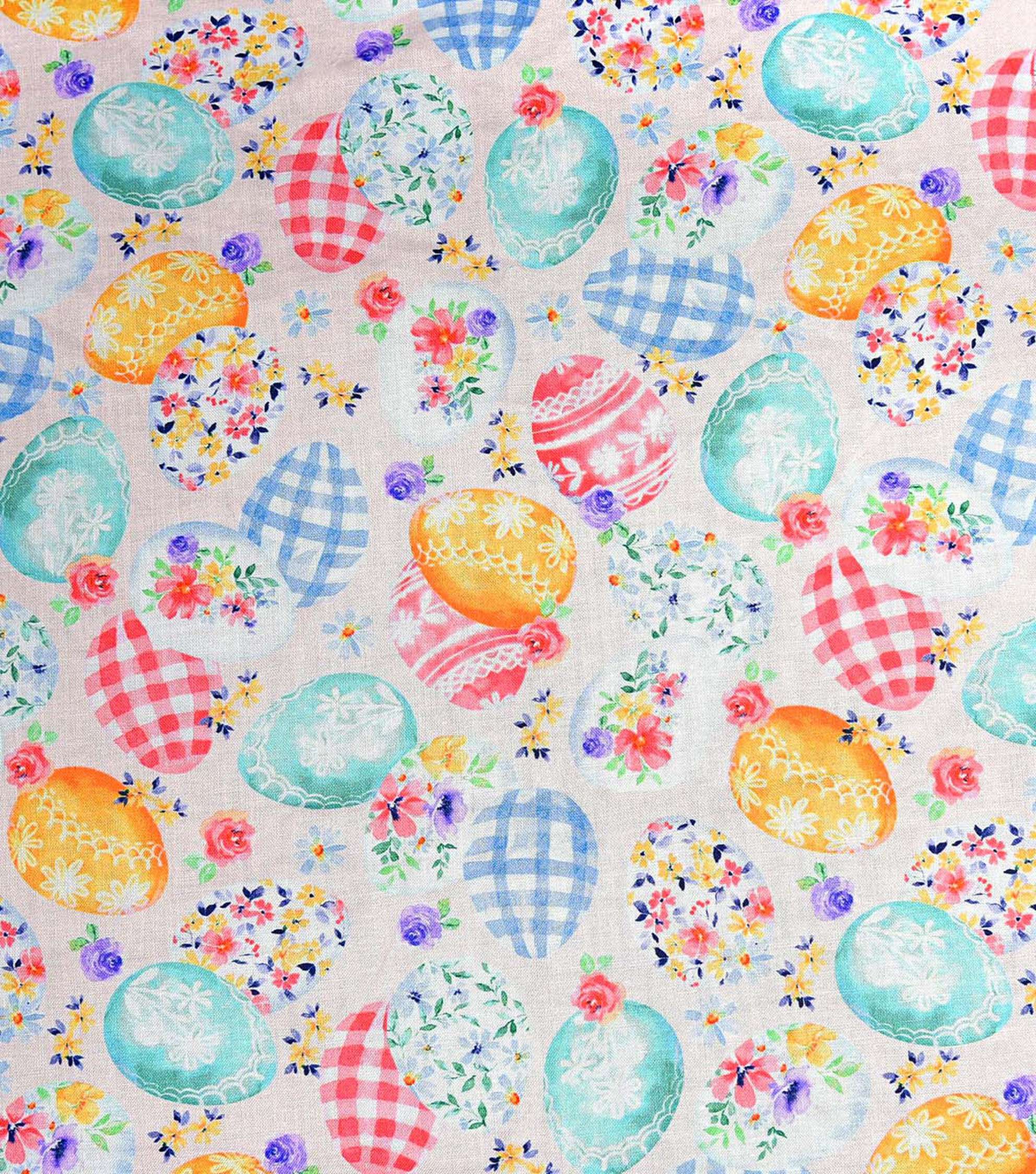 Multicolor Floral Decorative Eggs Easter Cotton Fabric
