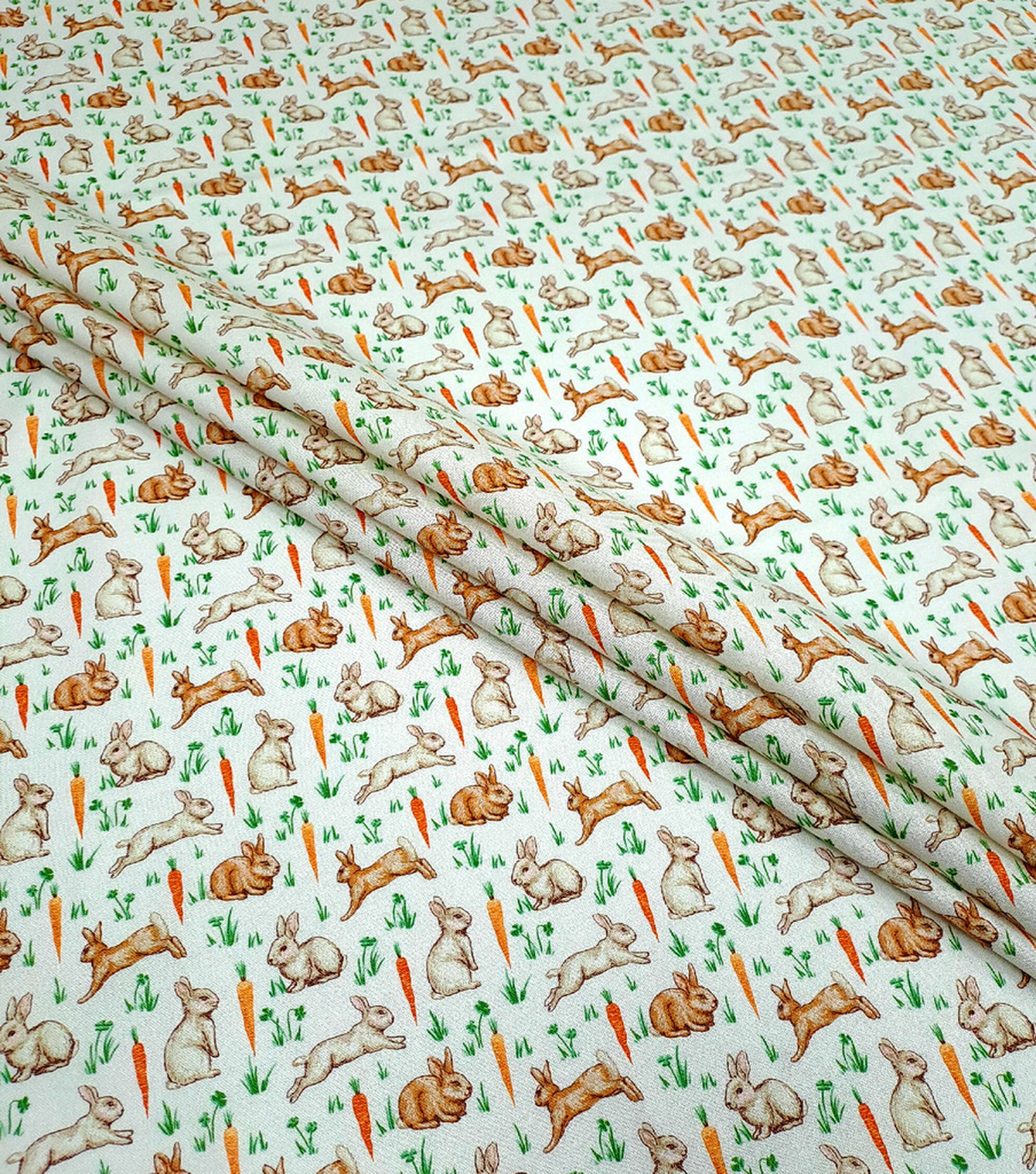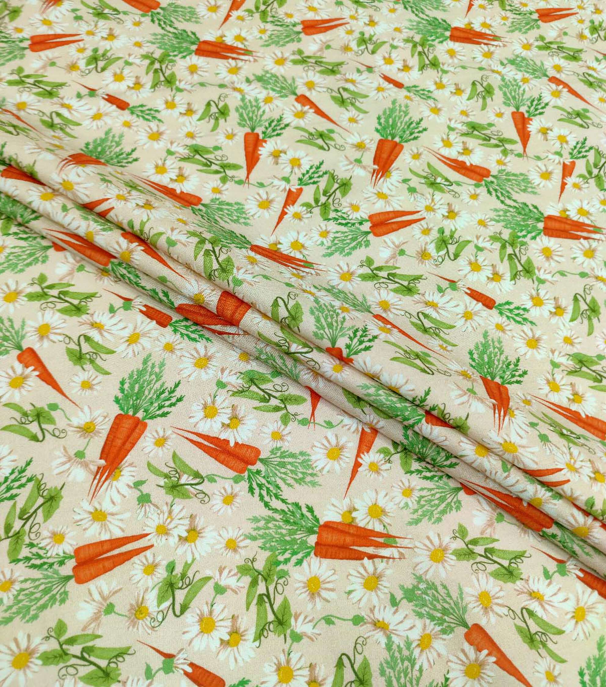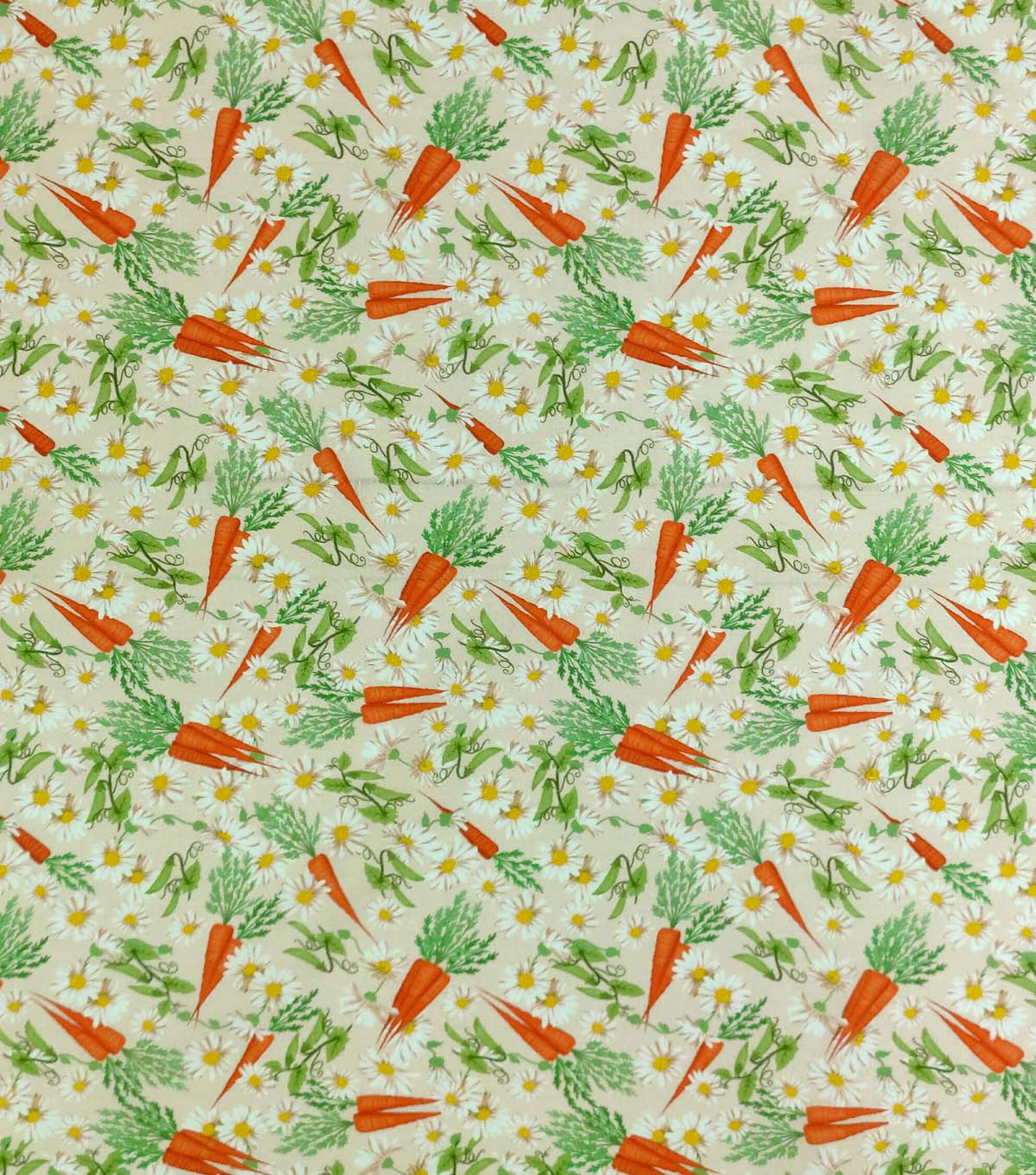 Hopping Bunnies & Carrots on Cream Easter Cotton Fabric