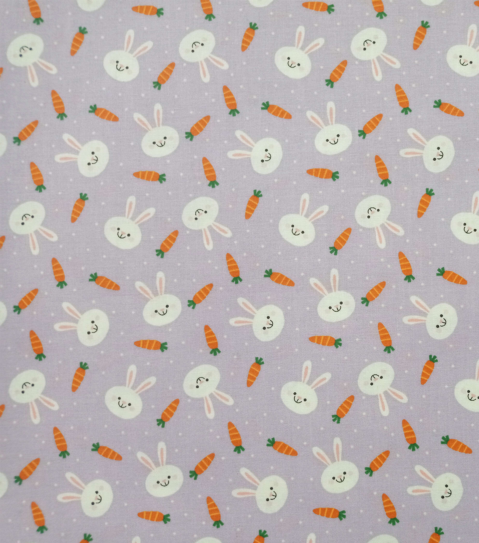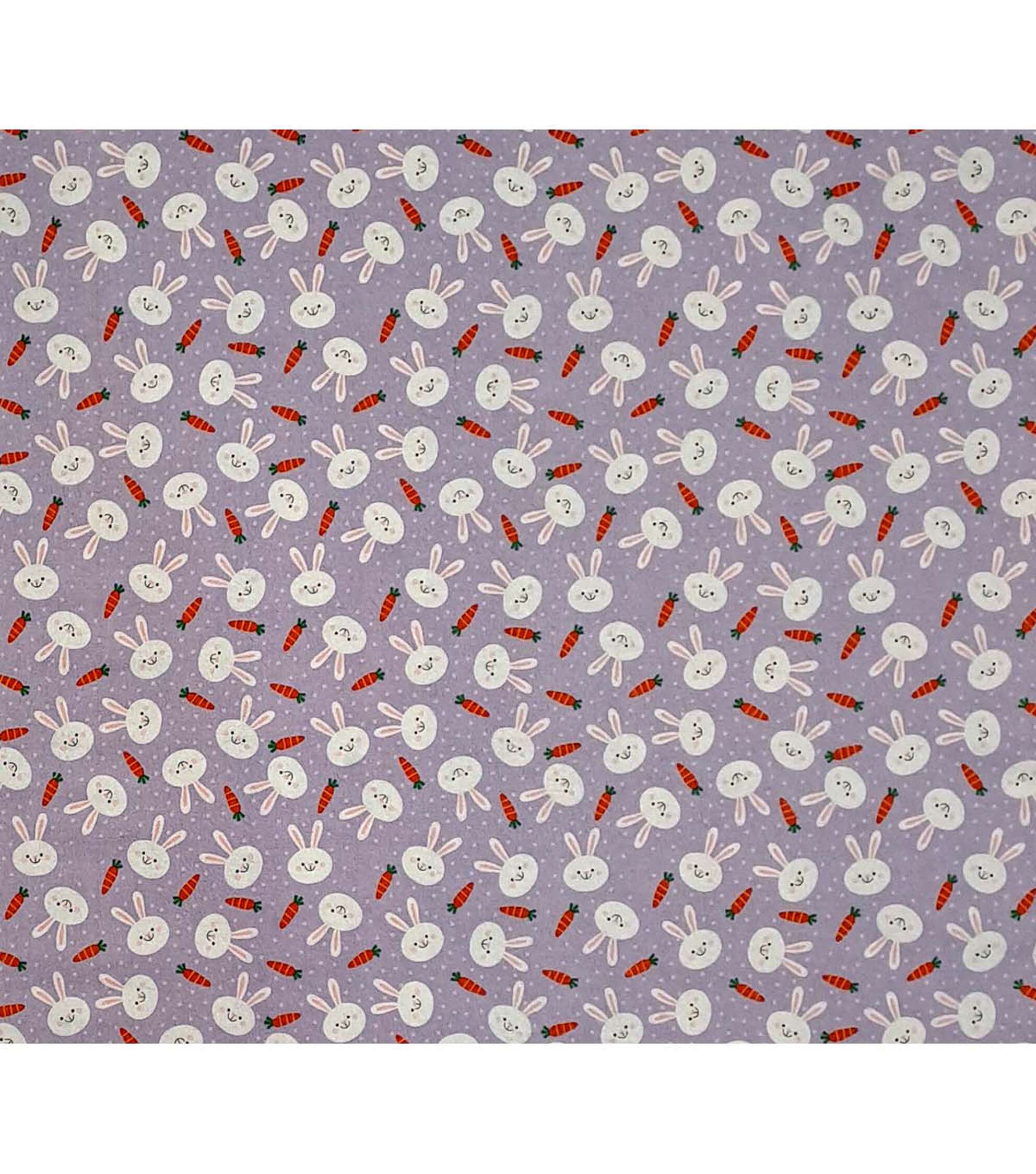 Bunny & Carrots on Purple Easter Cotton Fabric