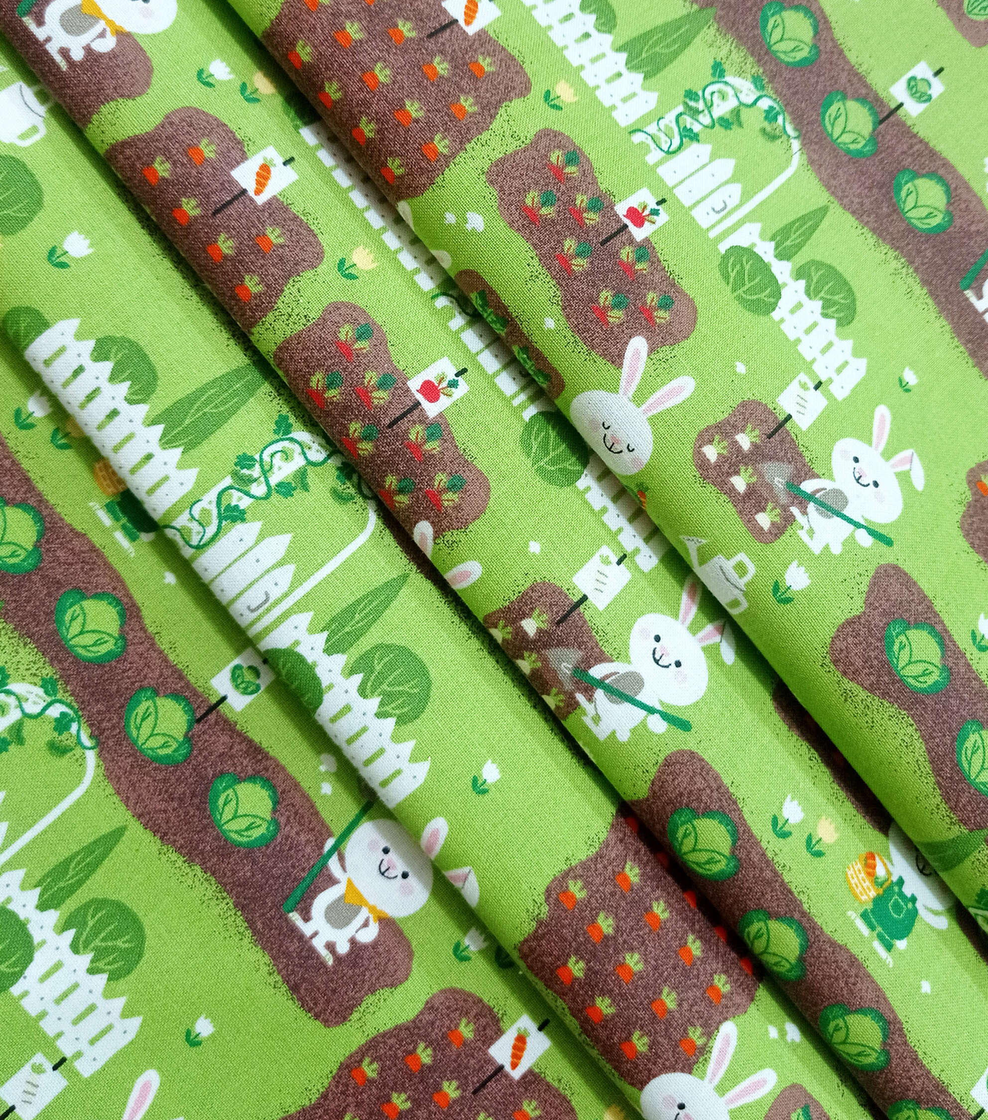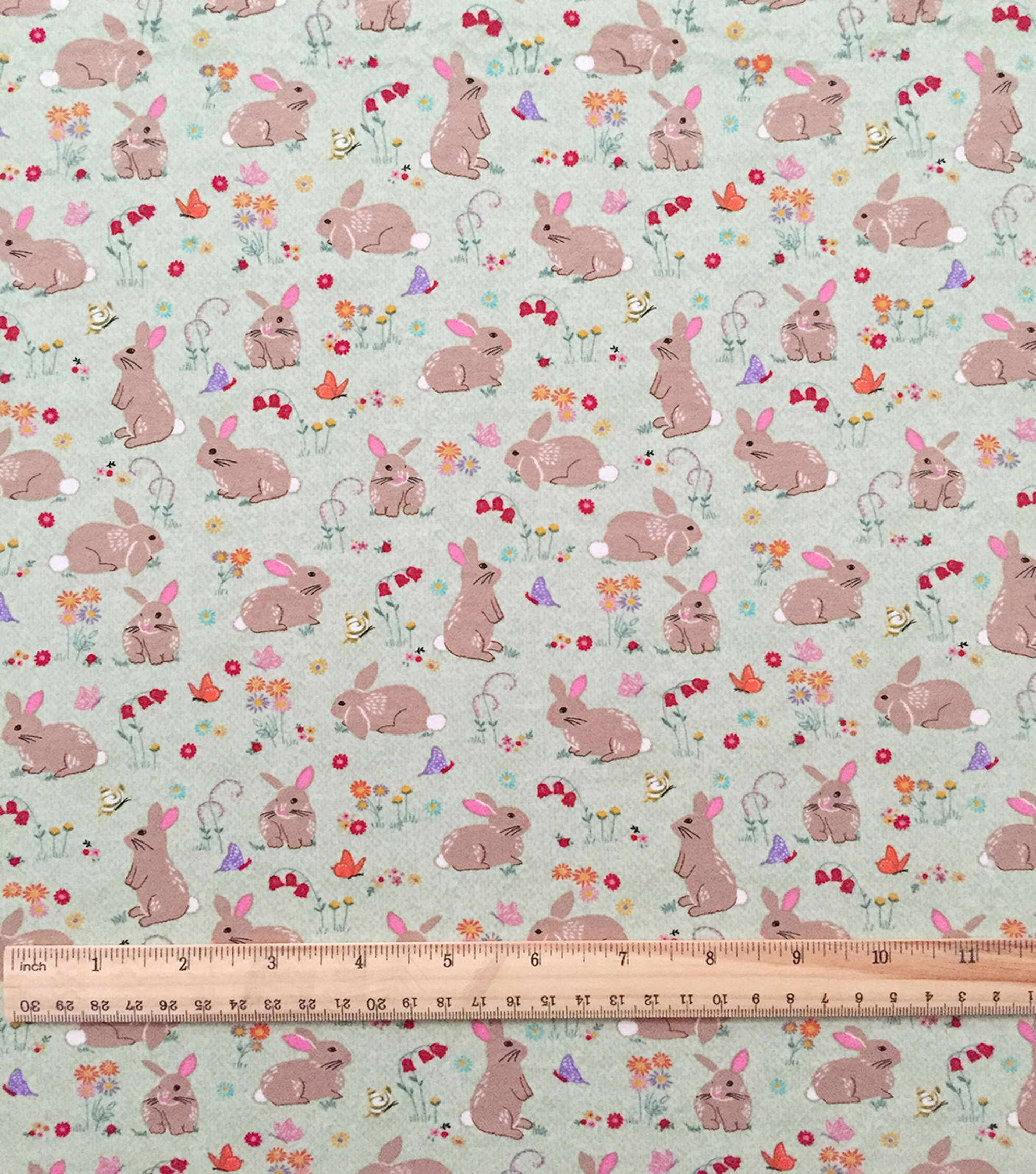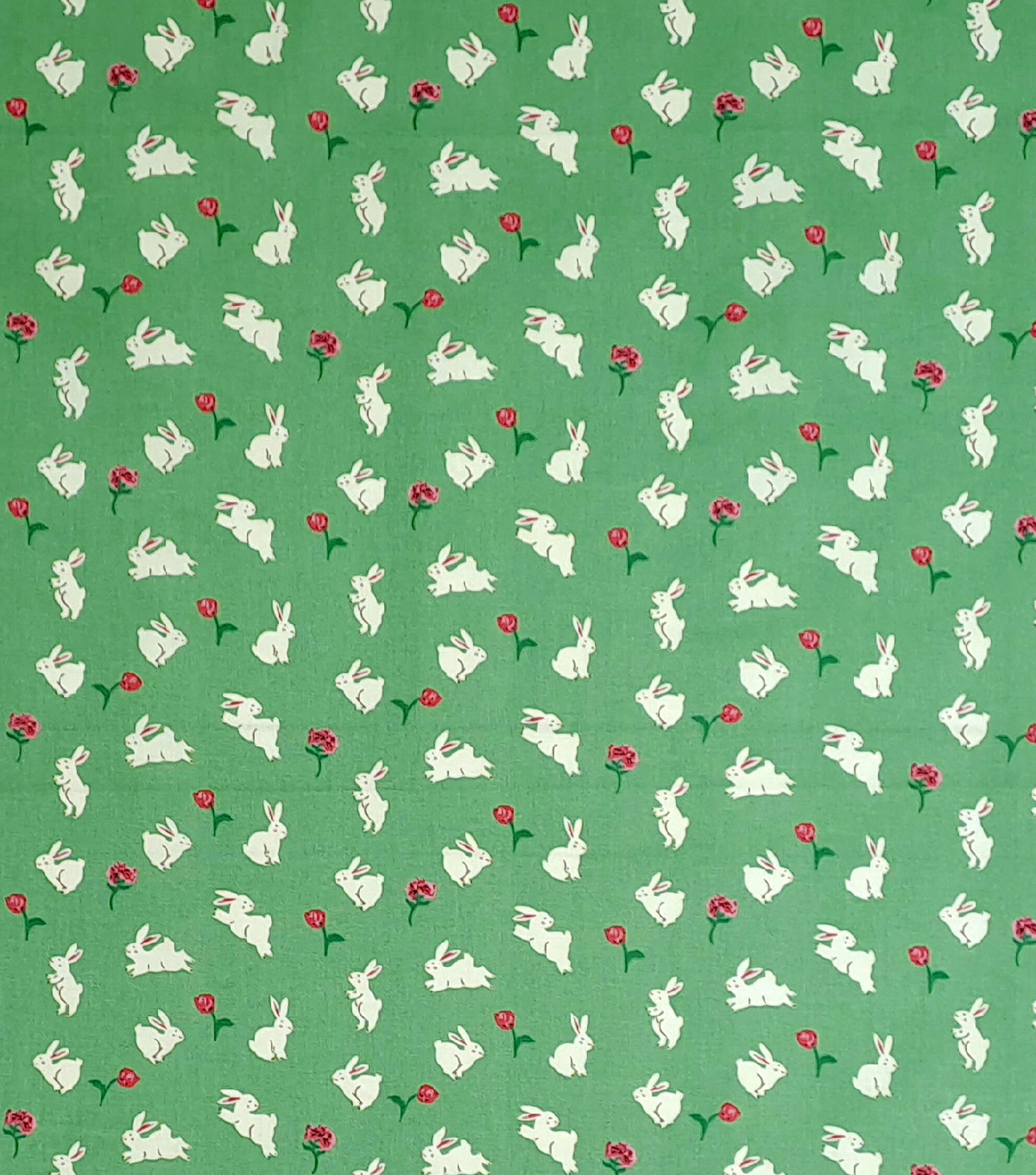 Hopping Bunnies On Sage Green Easter Cotton Fabric