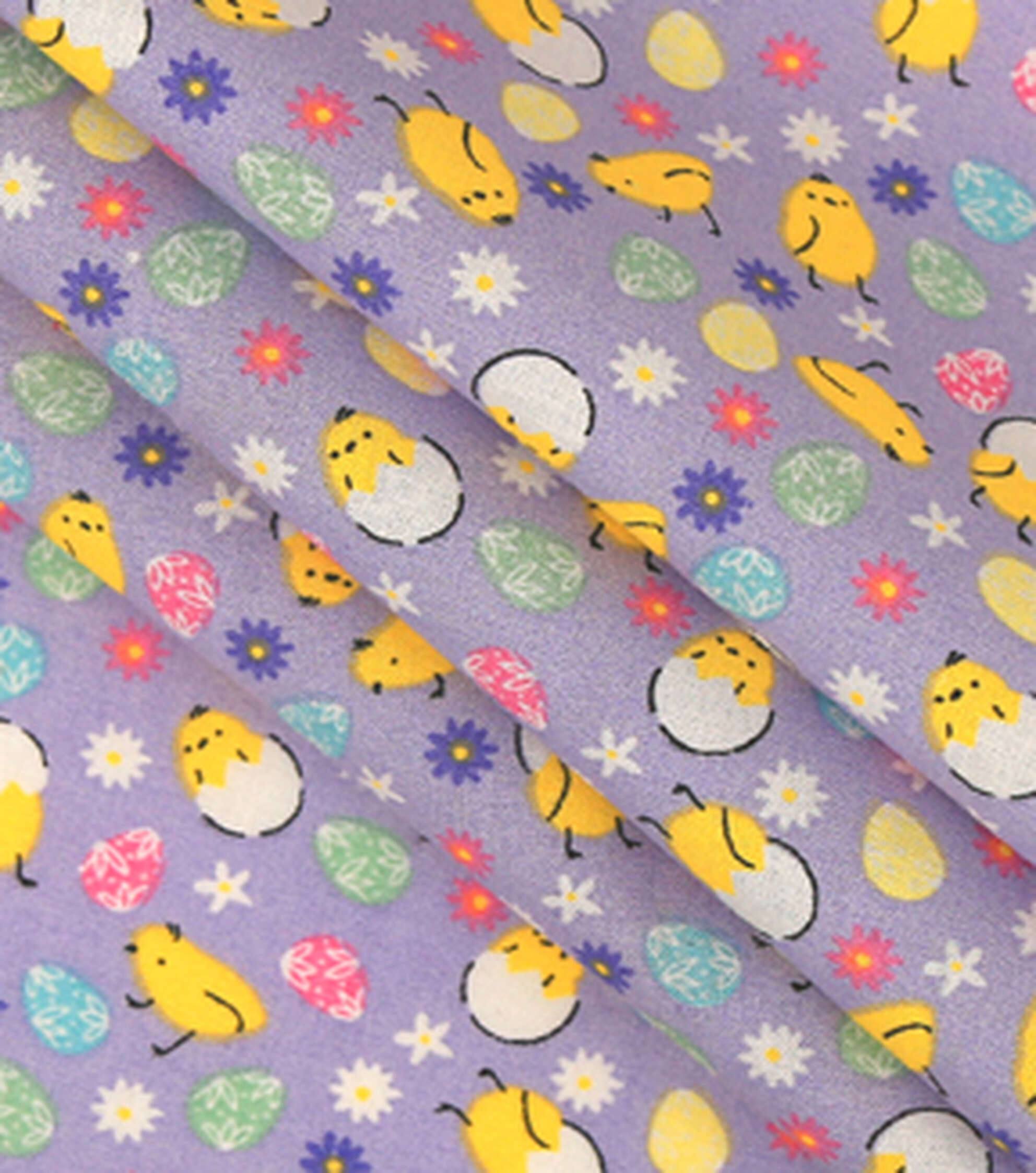 Chicks & Eggs on Purple Easter Cotton Fabric