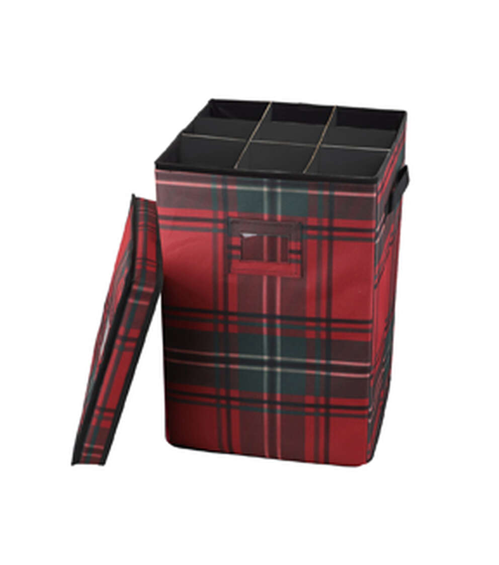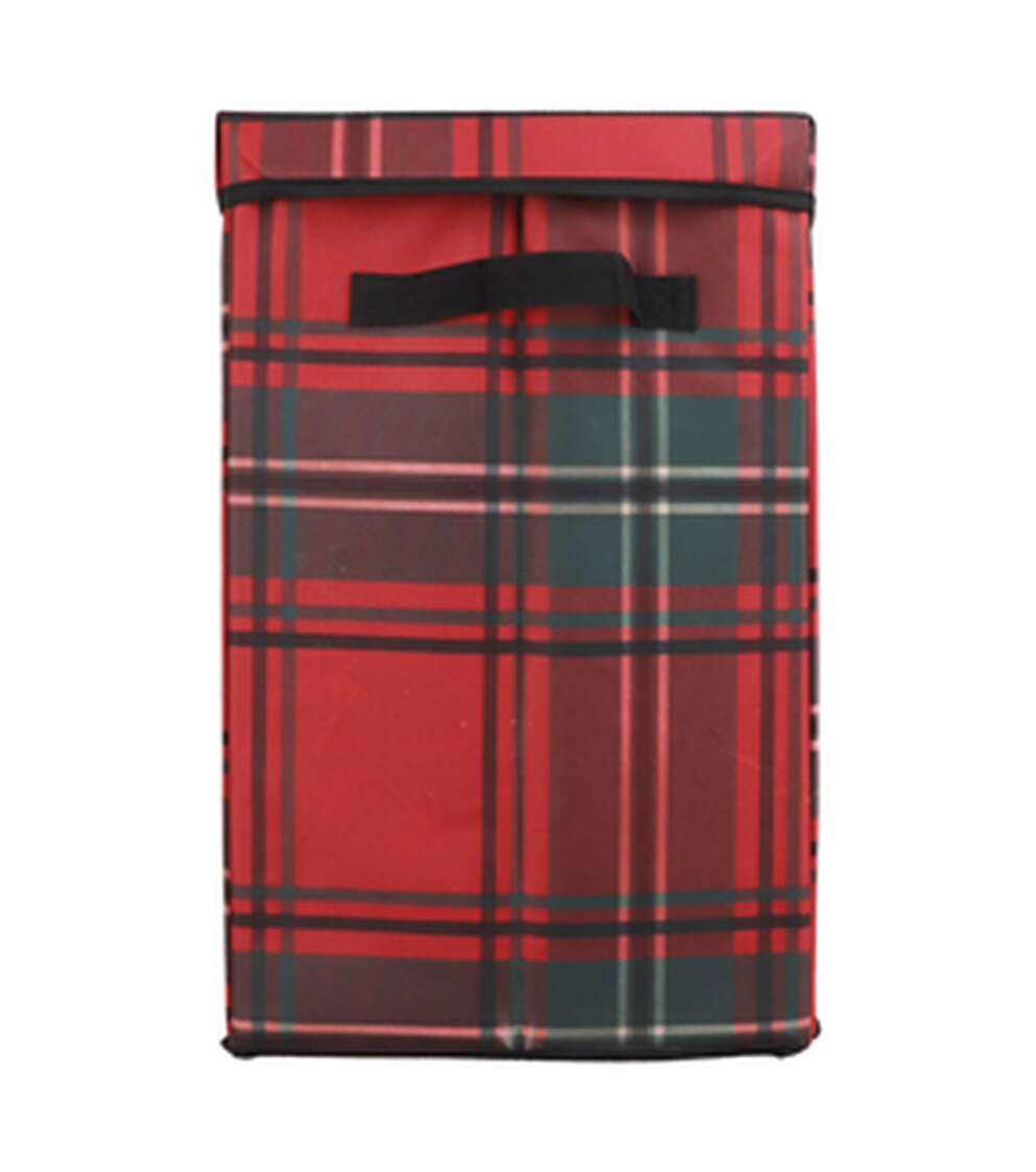 Get ready for the holiday season with the perfect storage solution for your nutcrackers. The 12" x 18" Christmas Plaid Nutcracker Storage by Place & Time is designed to store up to 9 nutcrackers, making it the perfect addition to your holiday decor. The reinforced handles make it easy to transport your nutcrackers from one room to another, while the foldable design allows for easy storage when not in use. Plus, with a convenient card slot, you can label your storage container for easy identification.