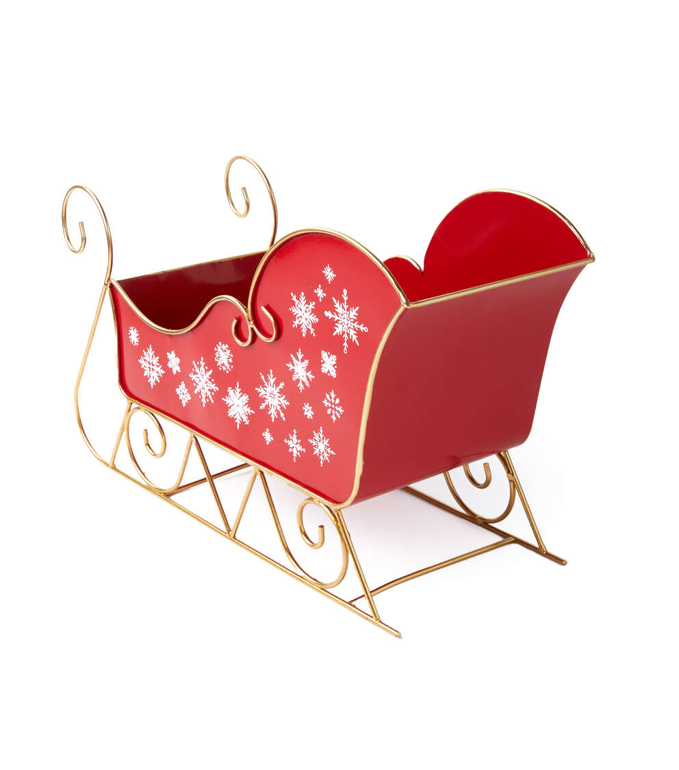 Bring the magic of Christmas to your home with this charming metal sleigh. Perfect for displaying on your mantle or as part of your holiday decor, this sleigh is sure to bring joy to all who see it. The bright red color and intricate design make it a standout piece that will add a festive touch to any room.
