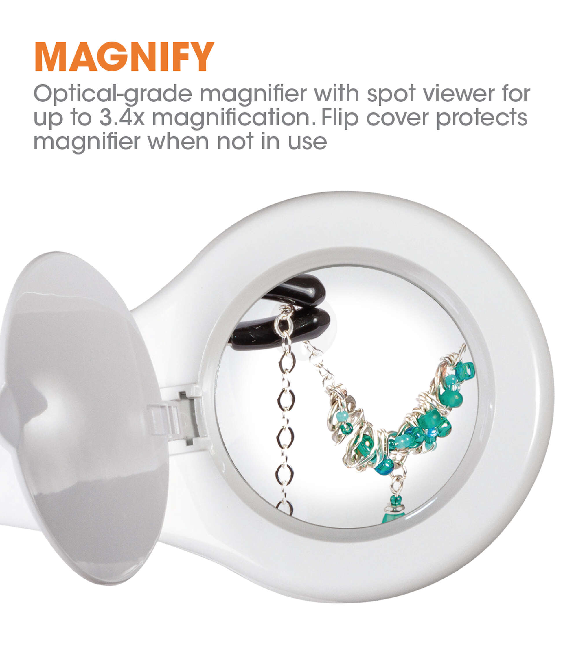 • Flexible neck easily adjusts to magnify and illuminate the area you need most