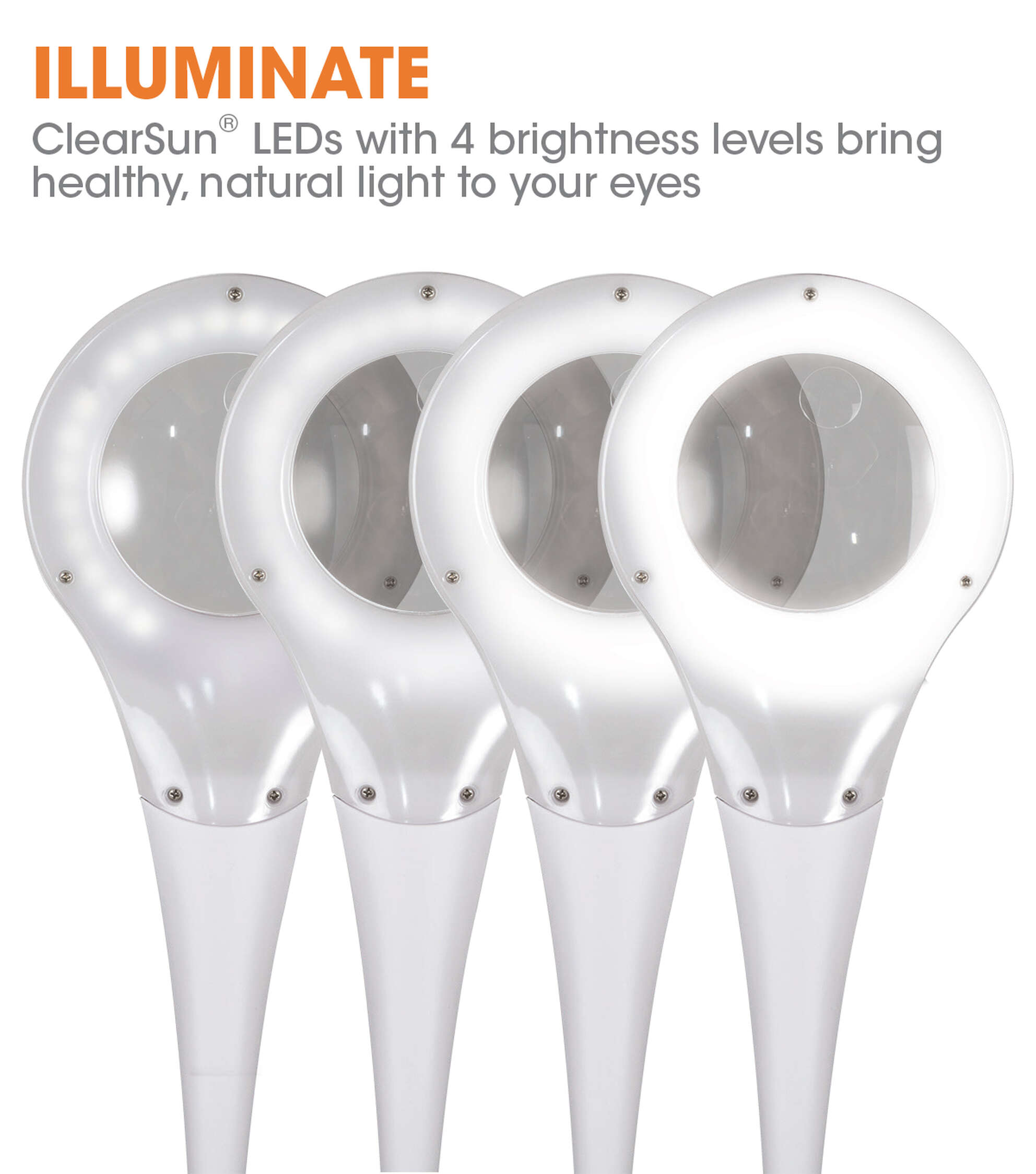 • Proprietary, exclusive OttLite ClearSun LED – reduces eyestrain by 51%