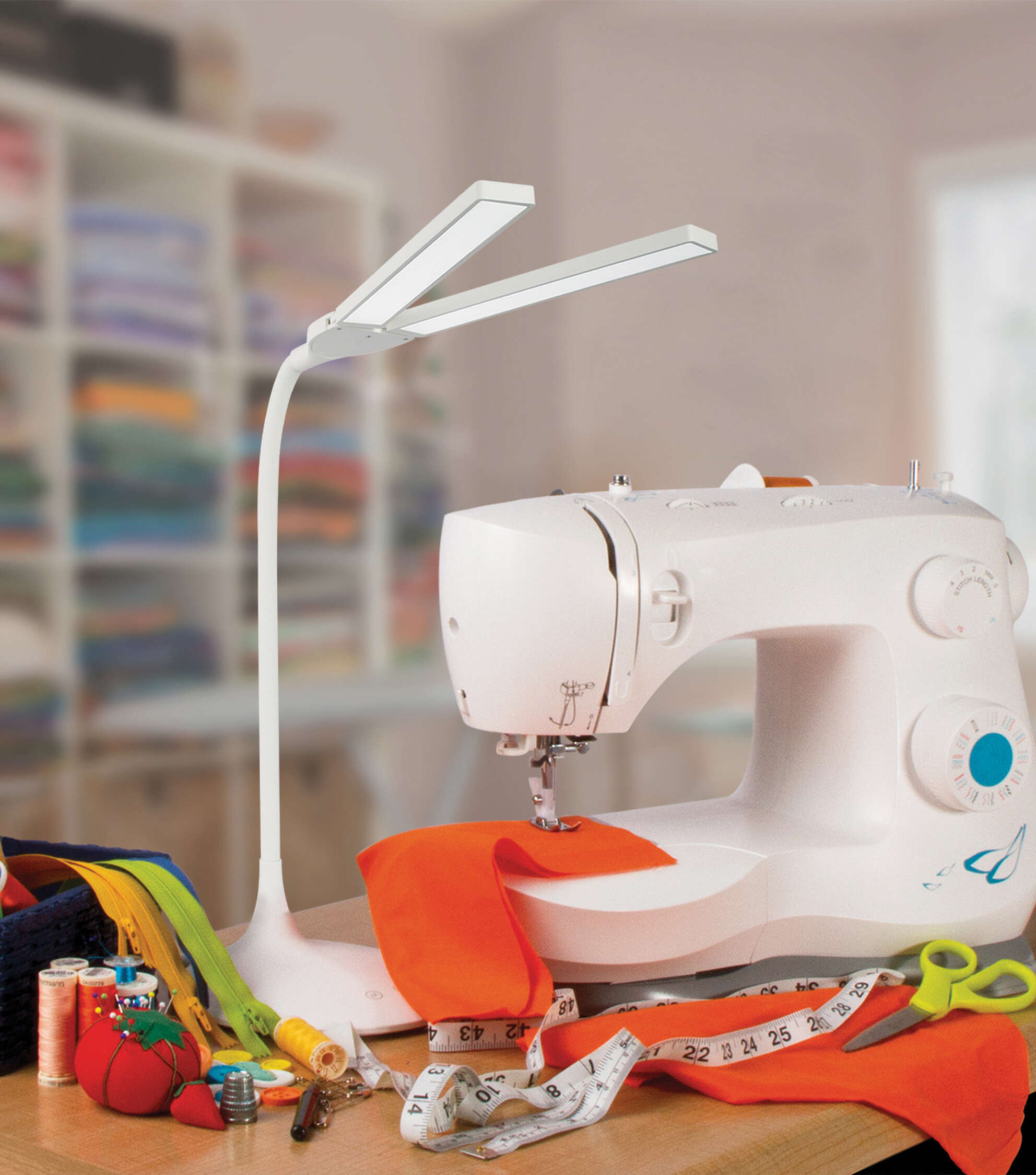 With a dual head design that pivots to 180 degrees or anything in between, the OttLite Lighting Dual Head LED Desk Lamp is the perfect crafting lamp for any room in your home. Dimmable brightness levels and three color modes allow for perfectly customized lighting. There's also a 40-minute shut off timer in case you like to craft at the end of the evening. With OttLite you'll see every color accurately and detail clearly with reduced glare and eyestrain so you can do what you love, longer. It features two 7.63-inch long shades. Dual pivoting shades move independently to provide two individual or one concentrated light source. Flexible neck easily adjusts the light angle over your projects. Touch activated control panel for selection of color mode, dimming feature and timer. Super bright natural LEDs rated to last up to 40,000 hours.