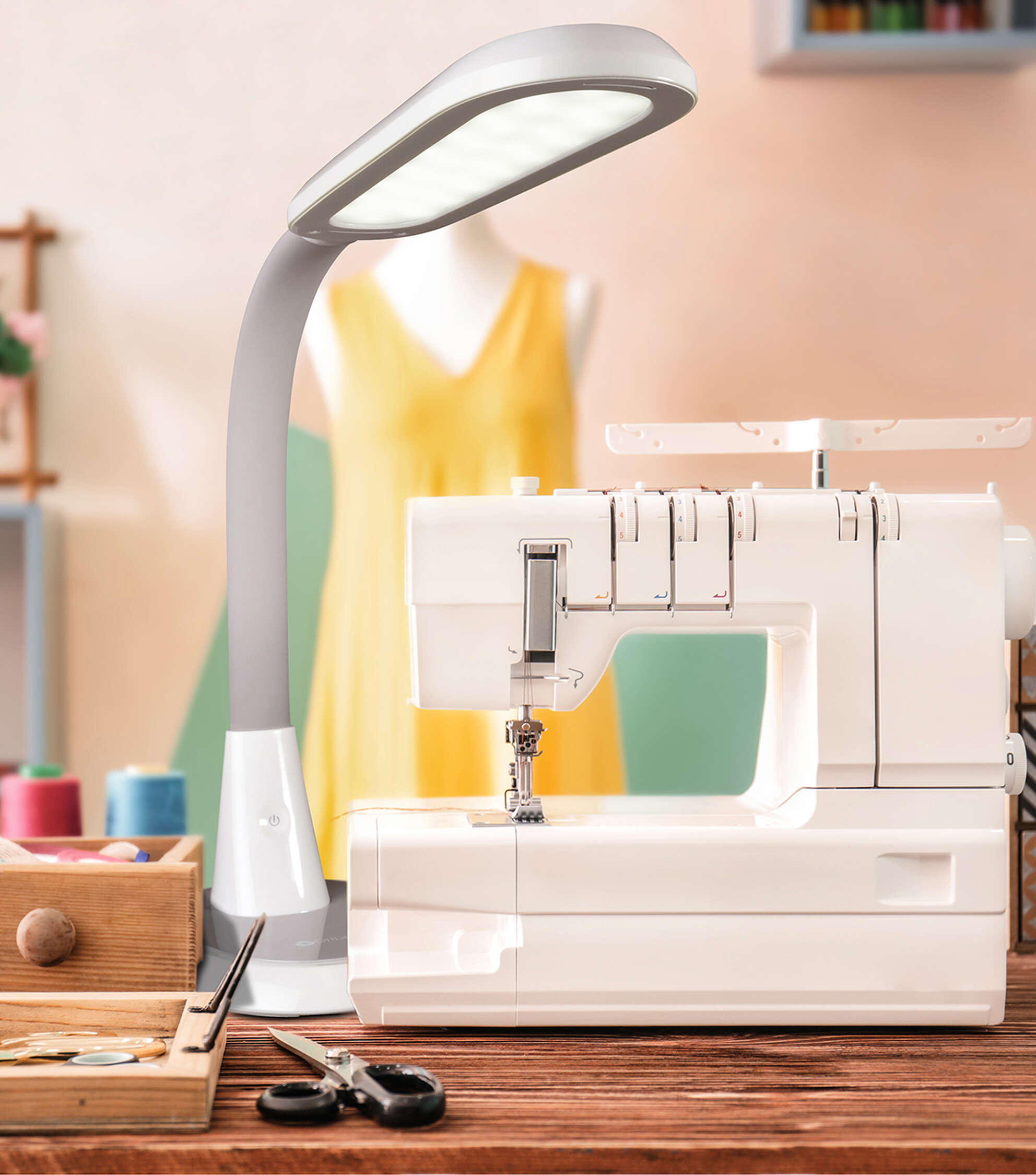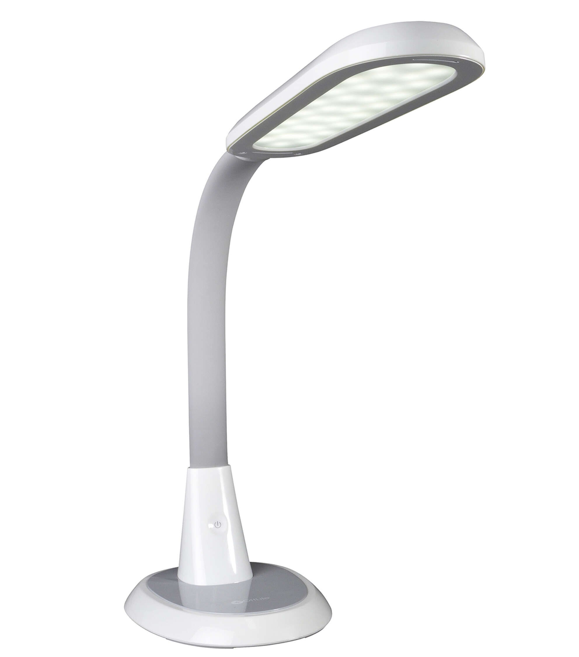 Perfect for large workspaces and big projects, the OttLiteLite Wide Area Dimmable LED Table Lamp delivers expansive ClearSun LED illumination that shows colors true to life and helps reduce eyestrain for hours of visual comfort. The wide shade measures 12 x 4 inches with three brightness levels to deliver just the right amount of OttLiteLite’s ClearSun illumination for your space. Use at full height of 27 inches to cover a large area; or bend the flexible neck down to 12 inches for focused, concentrated light, great for tracing, jewelry making and detail work. OttLiteLite allows you to see details clearly and colors accurately, helping you do what you love, longer.