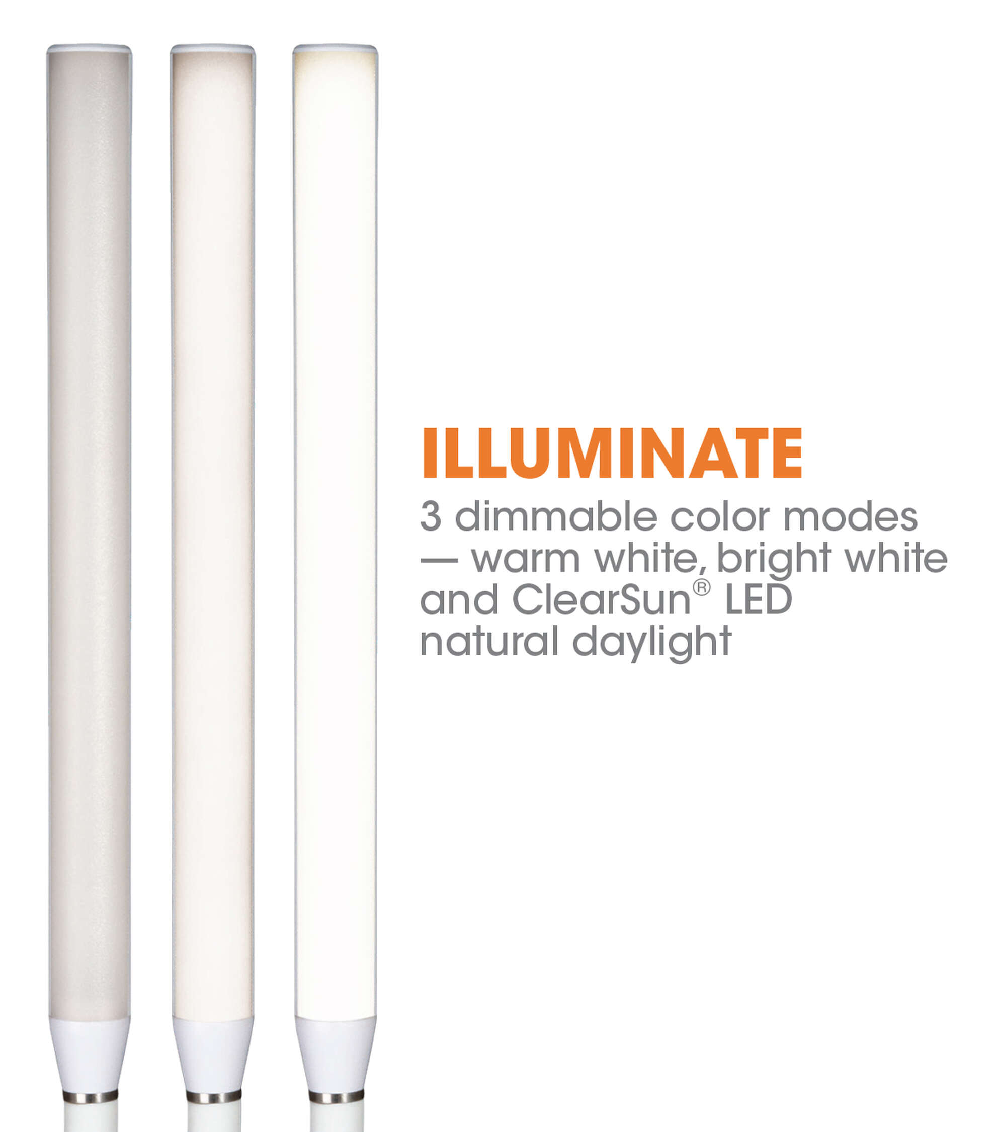 • Proprietary, exclusive OttLite ClearSun LED – reduces eyestrain by 51%