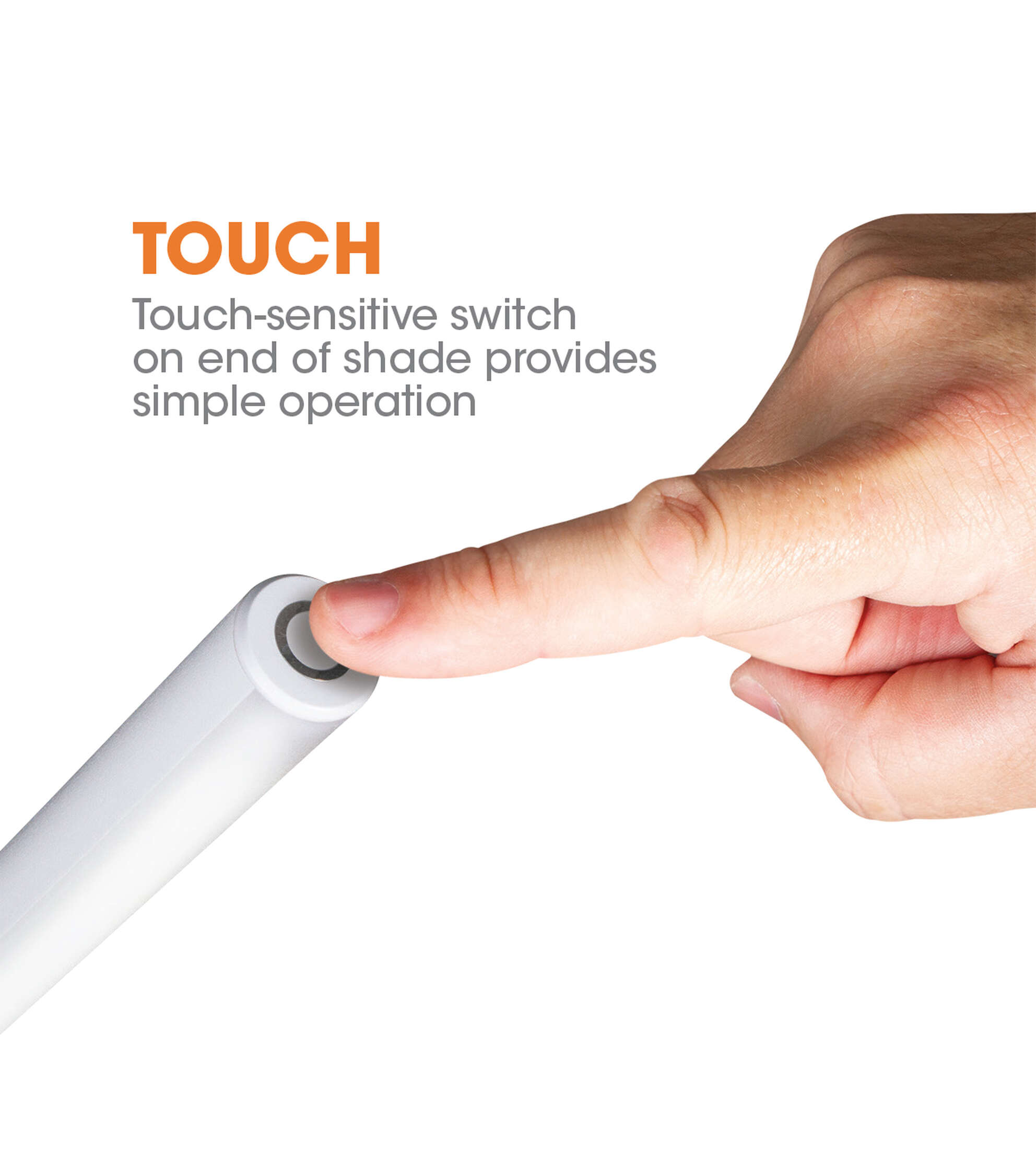 Great for projects large and small, the OttLite Extended Reach LED Desk Lamp features a 10.5 inch shade and super flexible neck that holds position over your work area and lets you easily adjust as you work. With OttLite’s exclusive ClearSun natural daylight LED technology, you’ll see every detail clearly and color accurately. OttLite ClearSun LEDs have a Color Rendering Index of 95+ so you can make color decisions with total confidence. With the touch activated controls, choose from three brightness levels to shine just the right amount of light over your project. With OttLite you’ll see every color accurately and detail clearly with reduced glare and eyestrain so you can do what you love, longer.
