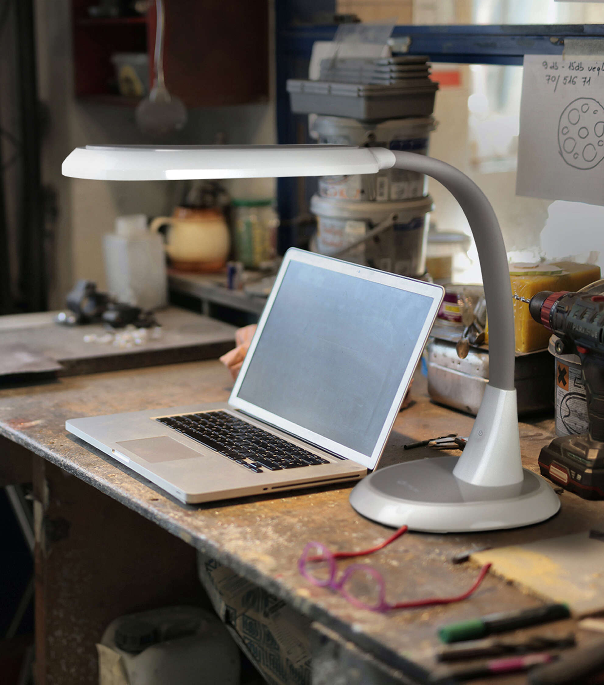 OttLite 27" White LED Adjustable Extended Reach Desk Lamp