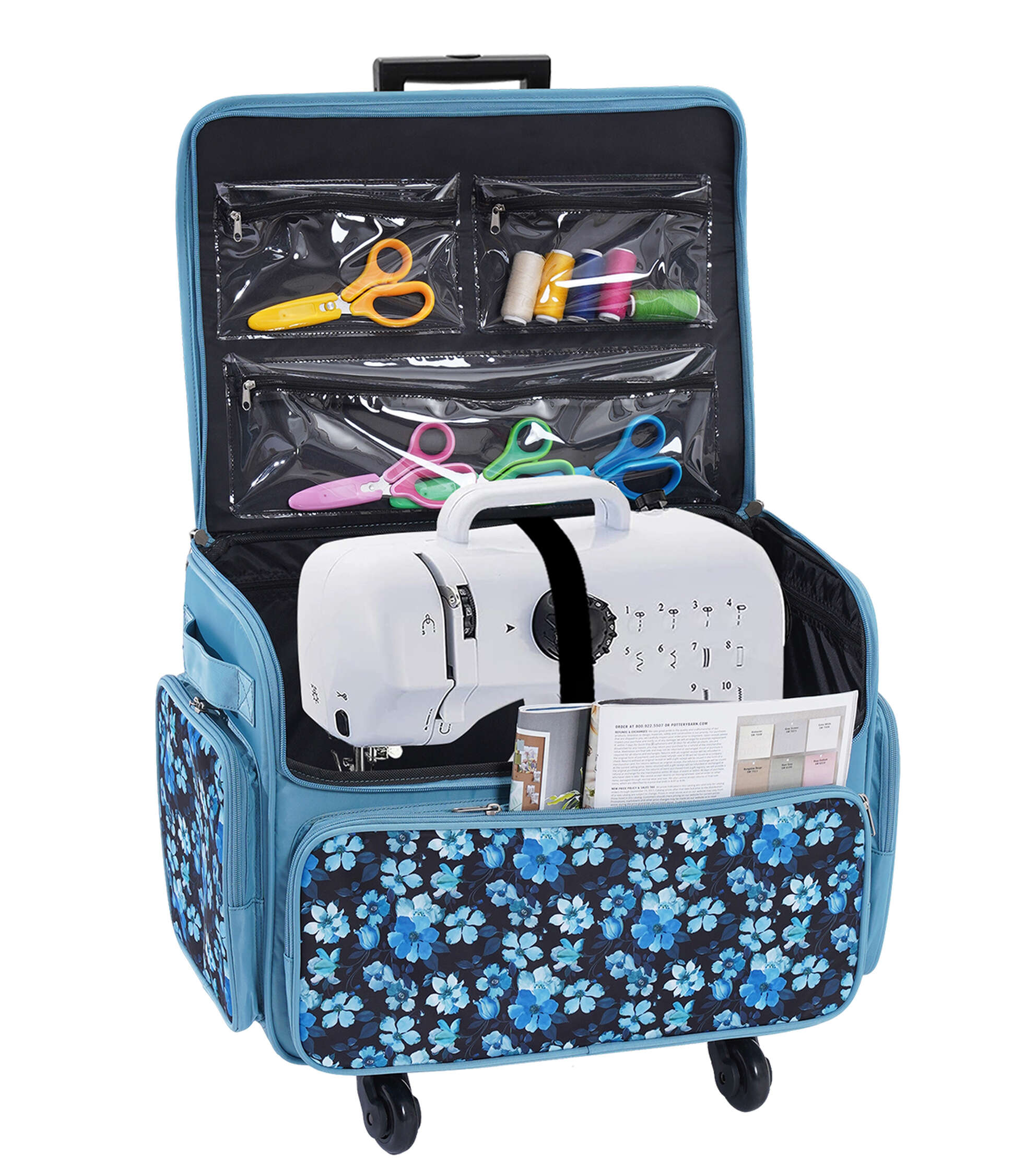 Stay Organized and Stylish with the Top Notch Blue Floral Rolling Sewing Storage Tote