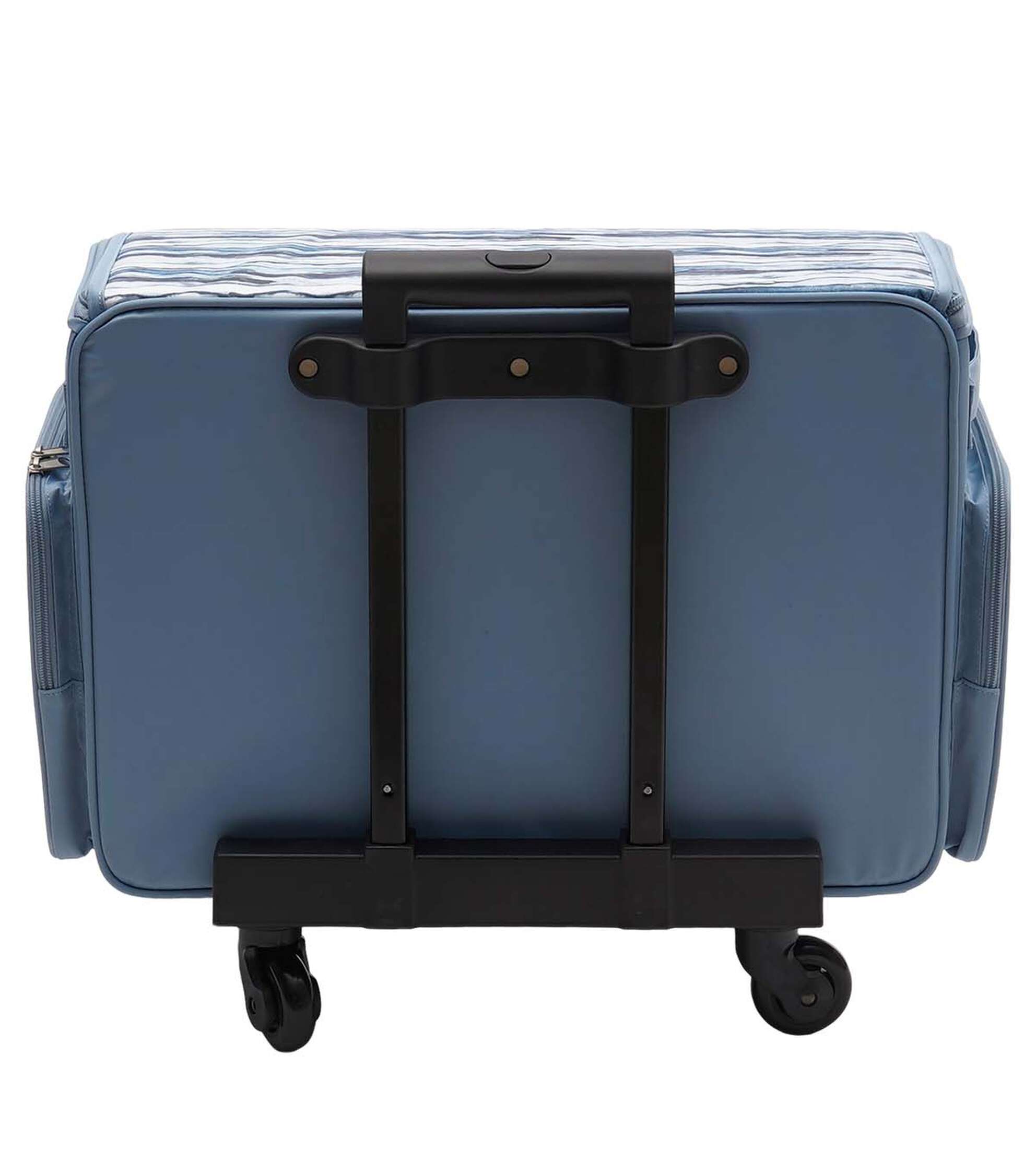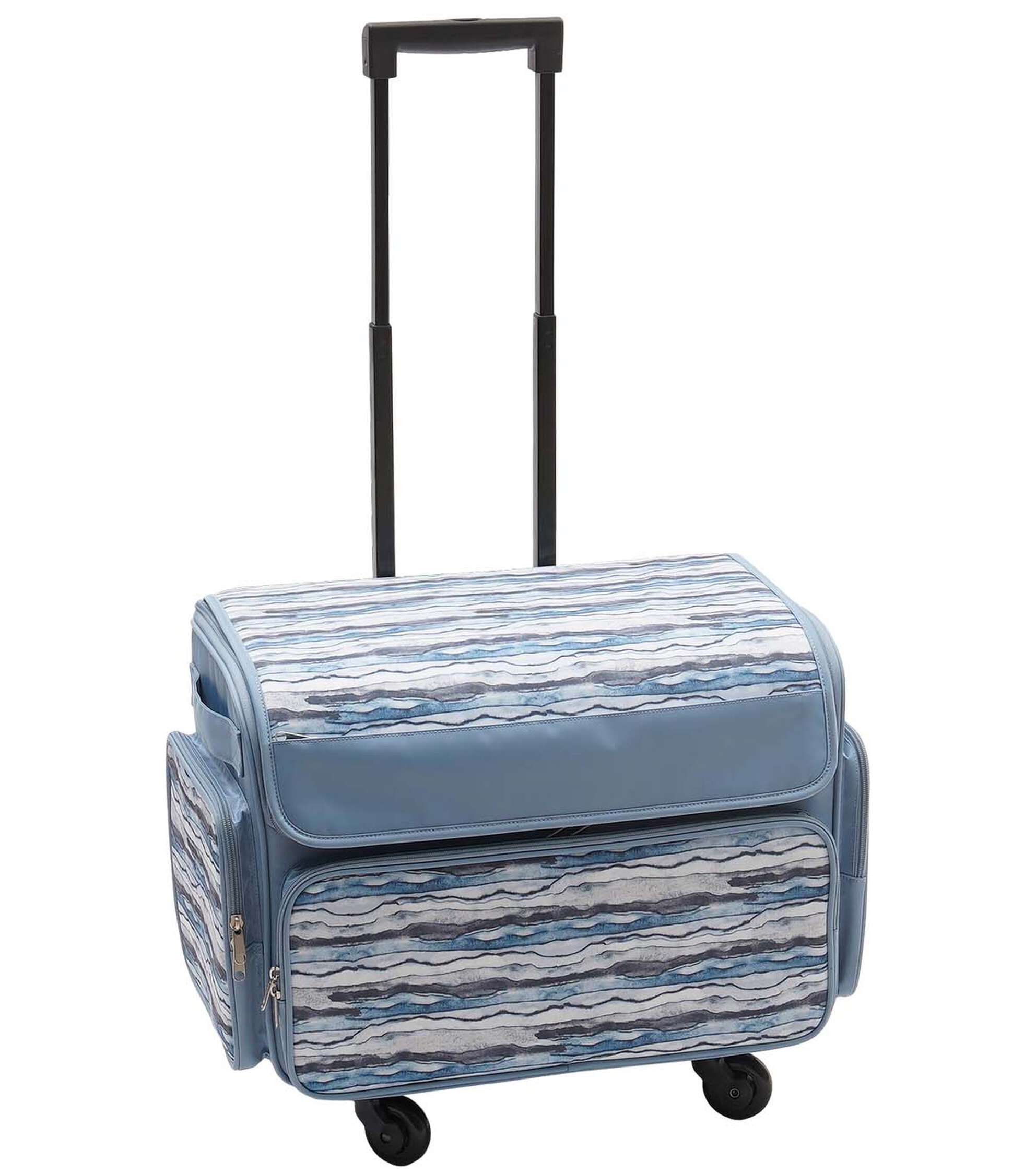The 13" x 18" Blue Stripe Rolling Sewing Storage Tote by Top Notch is made from 100% polyester and features a fun and colorful printed fabric. The tote comes equipped with four wheels for easy mobility, and best of all, there's no assembly required. Simply unpack your tote and start organizing your supplies right away.