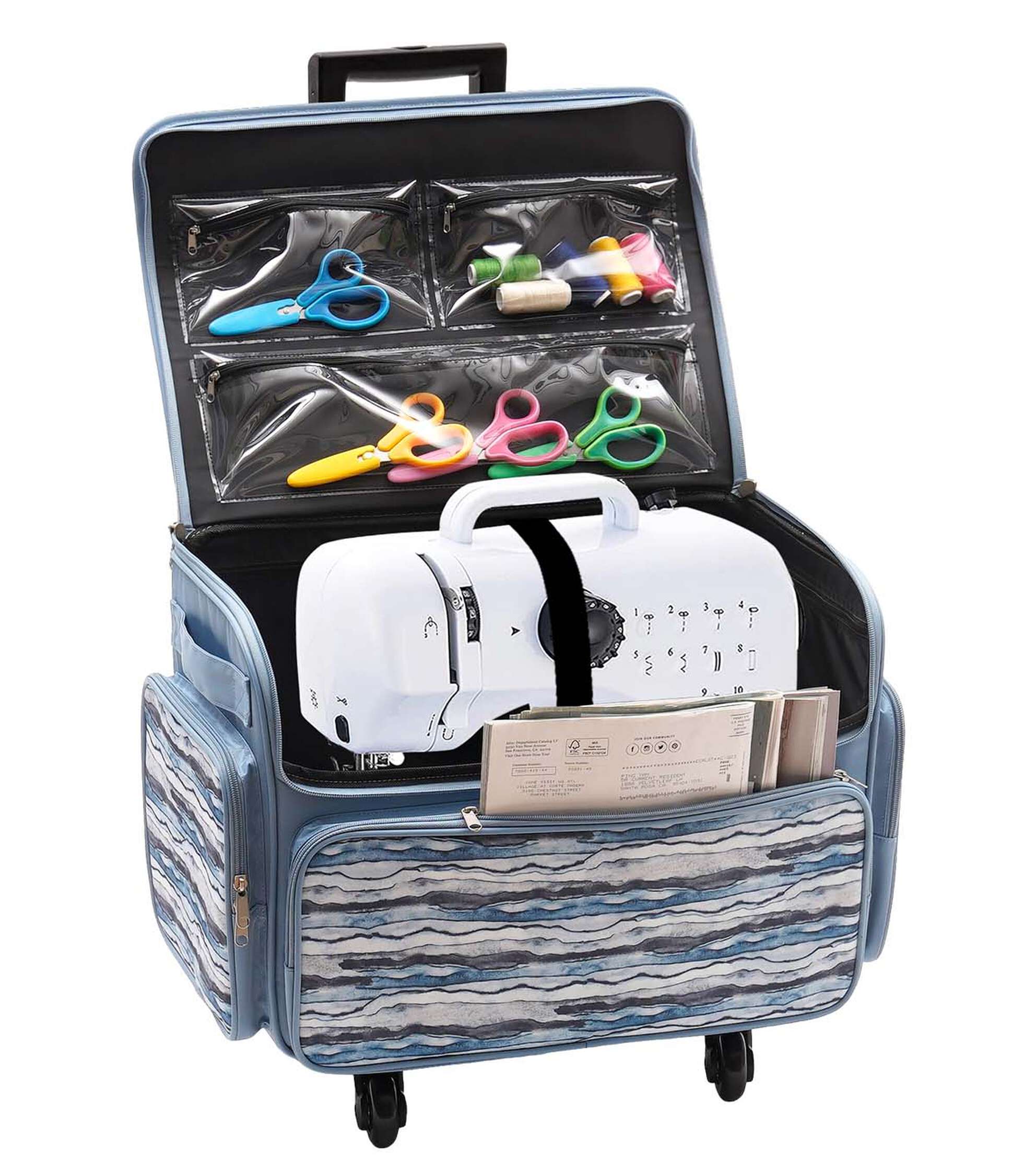 Get ready to take your sewing game to the next level with this stylish and functional storage tote. Whether you're a seasoned pro or just starting out, this tote is perfect for keeping all of your supplies organized and easily accessible. With its spacious interior and convenient rolling design, you'll be able to take your sewing projects with you wherever you go.