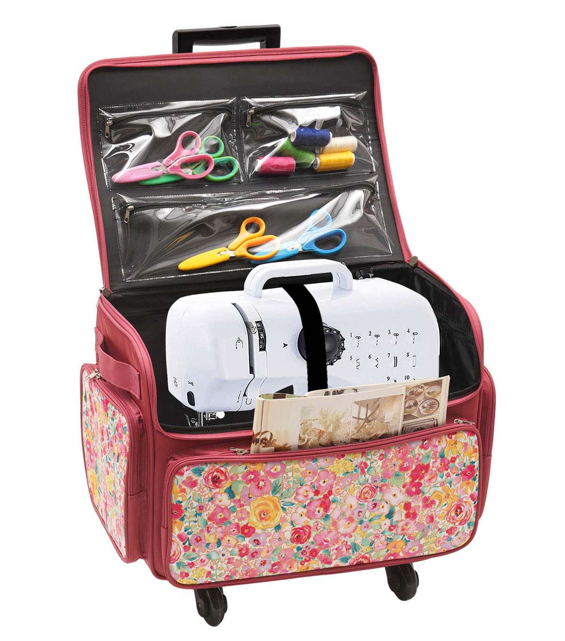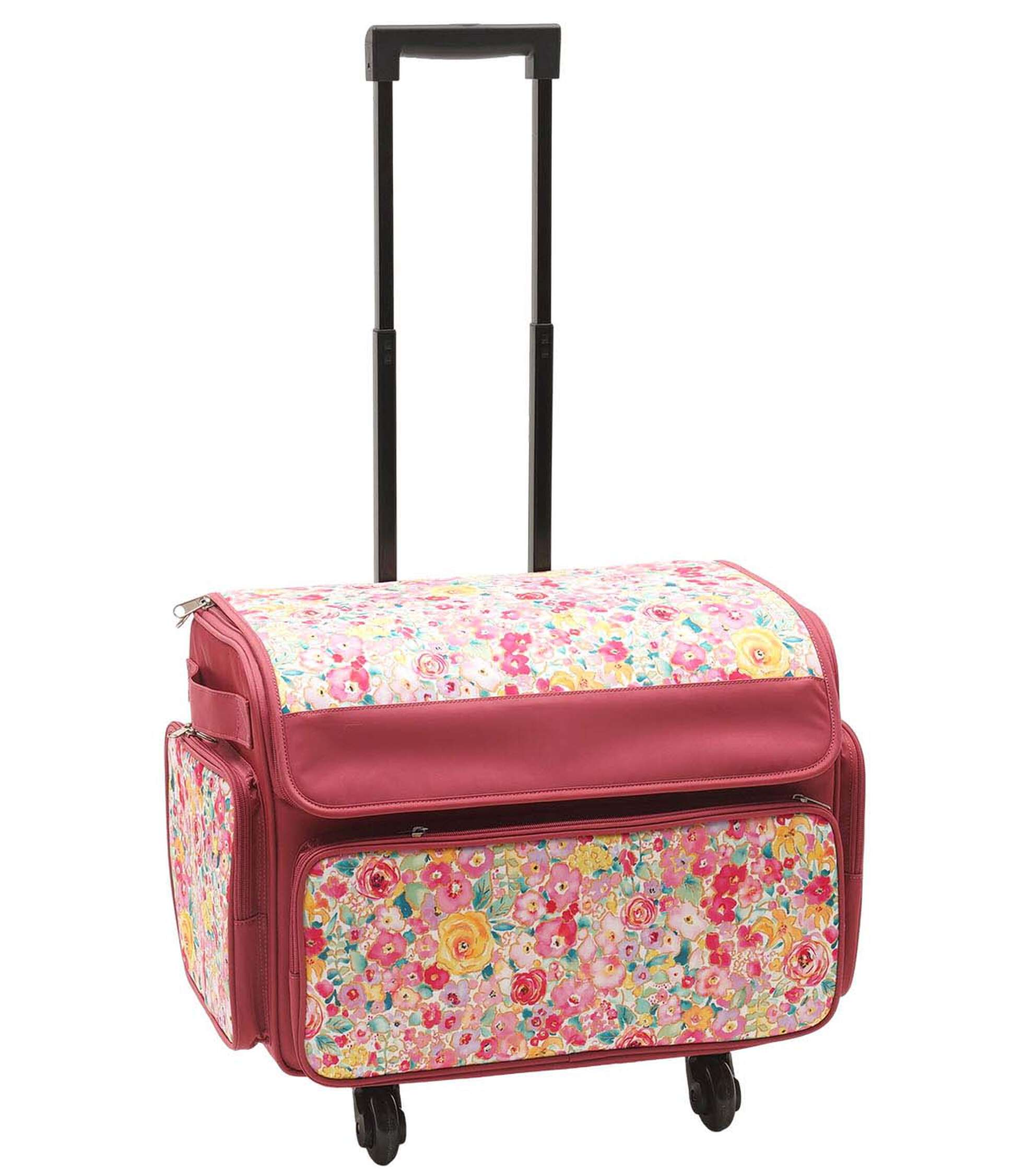Stay Organized and Stylish with the 13" x 18" Pink Floral Rolling Sewing Storage Tote by Top Notch