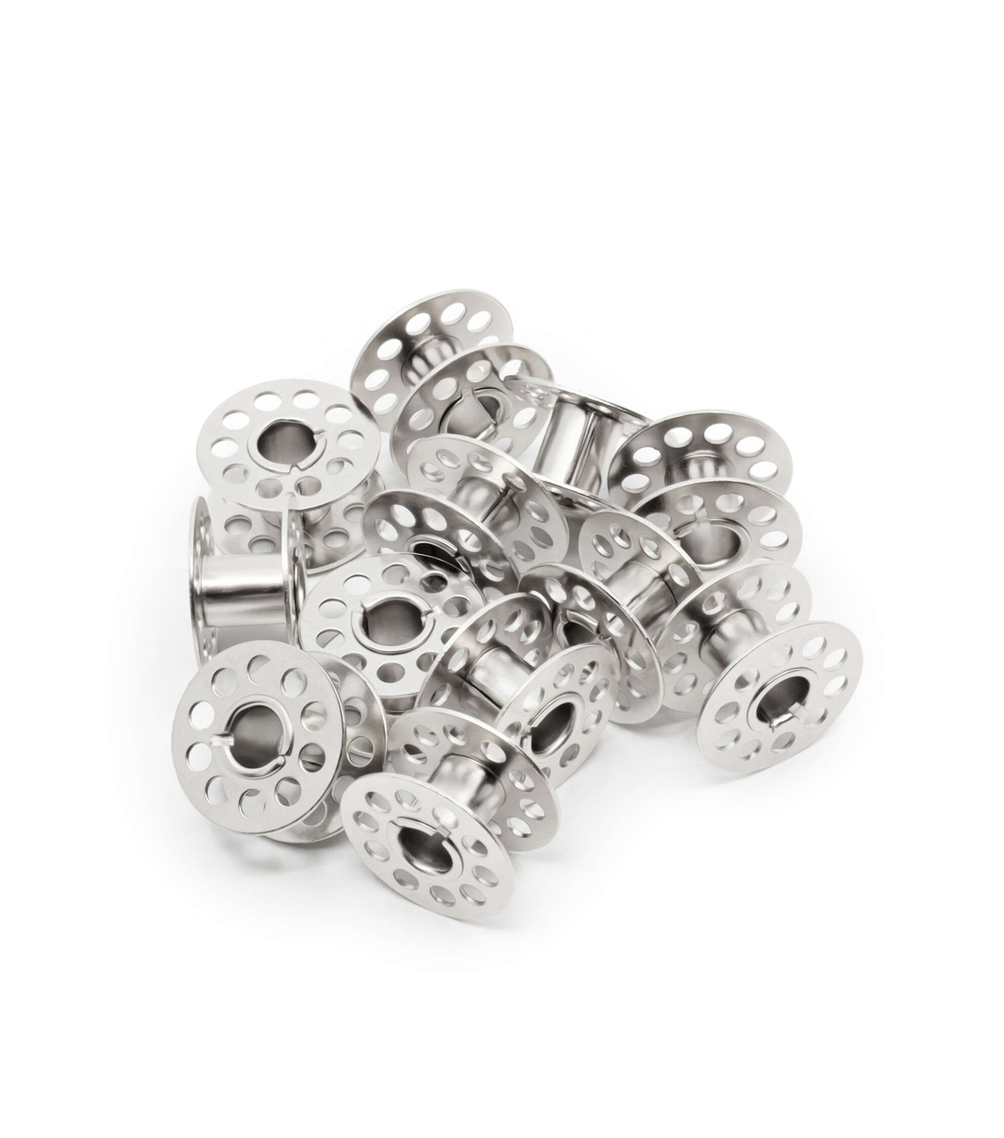 Organize sewing threads neatly in the Dritz Box of Bobbins - Clear. This pack contains 12 bobbins of Class 15 in a plastic case that can be used to keep threads in place when not in use. These metal bobbins are designed to fit in all Singer Class 15 models and machines like Baby Lock, Riccar, Simplicity and White.