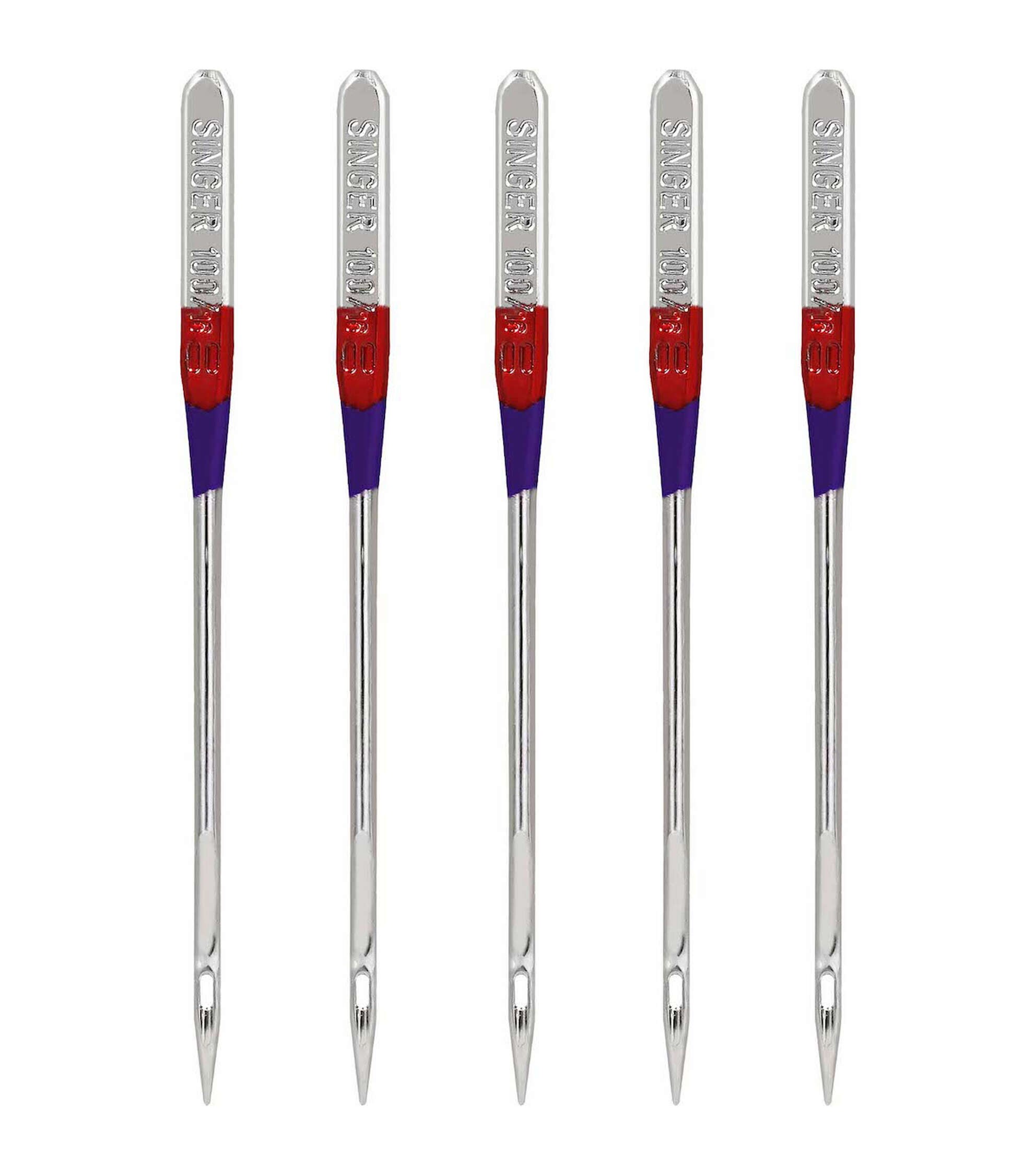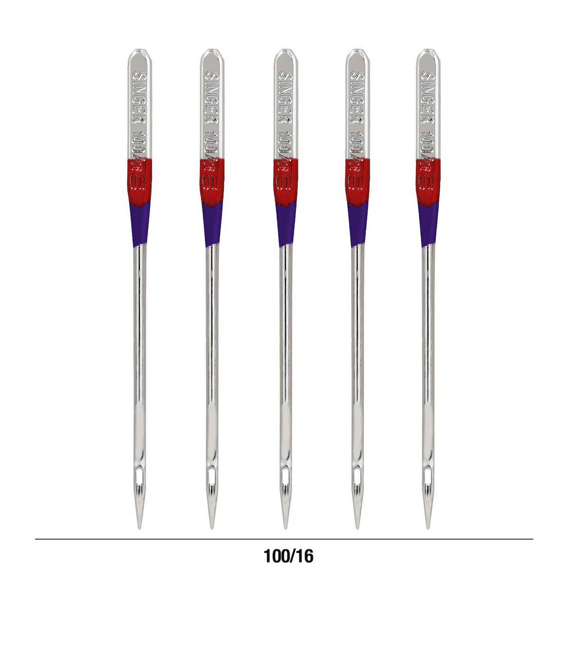 Use SINGER regular point, all-purpose machine needles, size 100/16, for basic stitching jobs on heavyweight woven fabrics such as denim, drapery, wool and corduroy. The color-coded machine needles are compatible with most quality sewing machines, including SINGER, Brother and Kenmore.