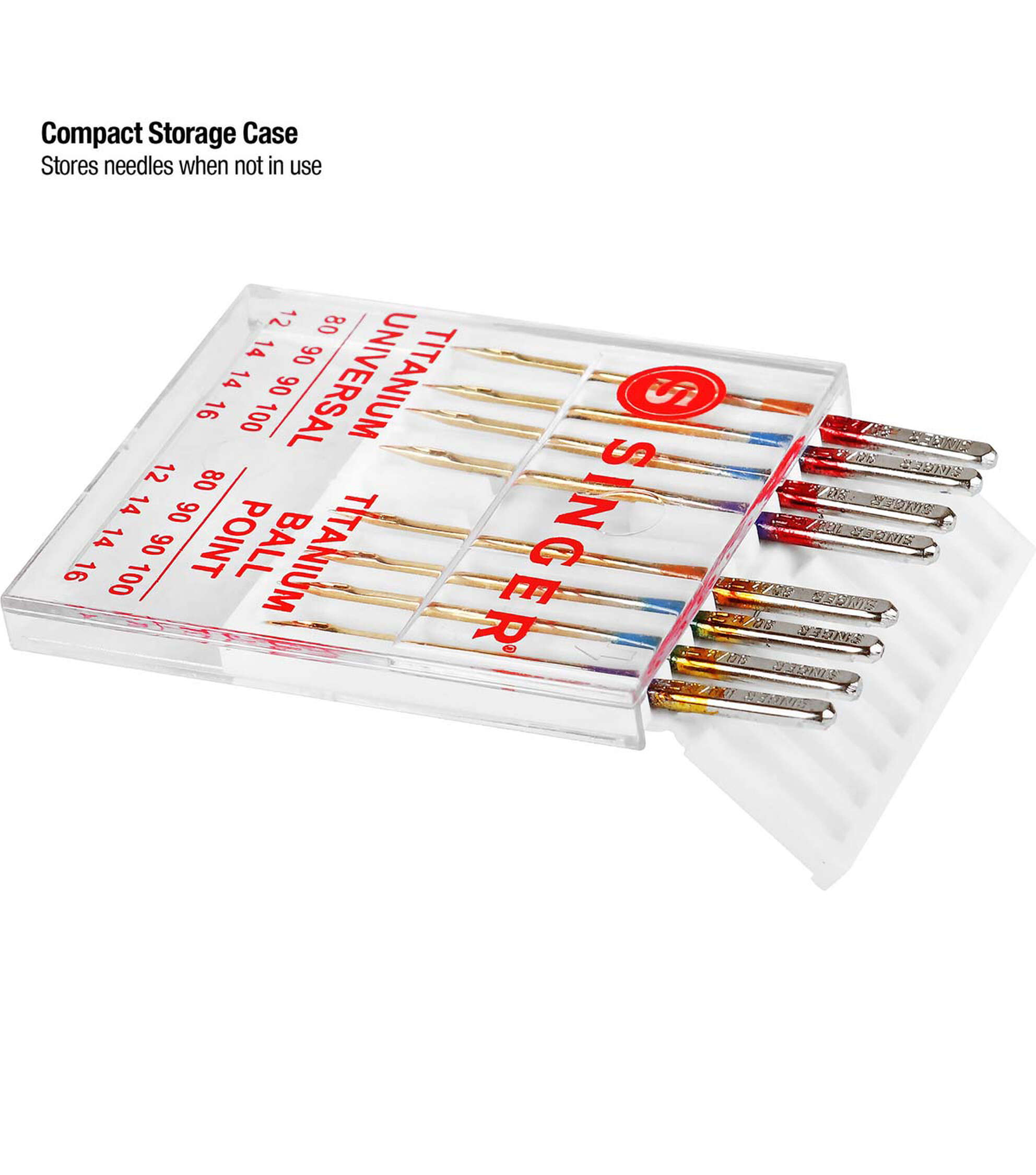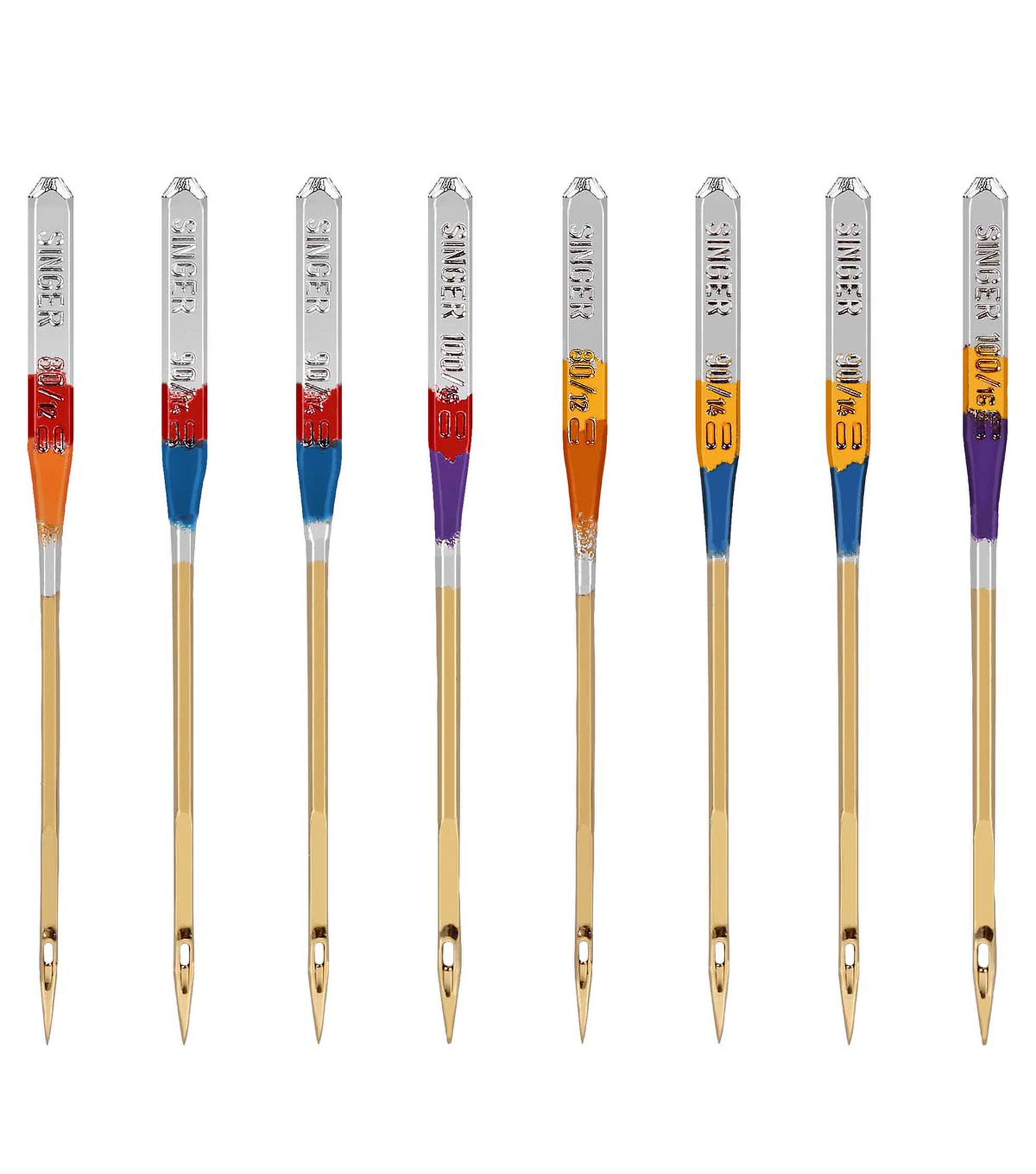 Any sewing enthusiast will love to have the Singer Titanium Universal Regular & Ball Point Machine Needles in their tool kit. This pack includes eight regular point and ball point titanium sewing machine needles in assorted sizes. Orange needles in size 80/11 are designed for use with lightweight fabrics, blue needles in size 90/14 are for use with medium-weight fabrics and purple needles in size 100/16 for use with heavyweight fabrics. These needles last up to 4 times longer than traditional steel needles and are compatible with Singer, Brother, Kenmore and other quality sewing machines.