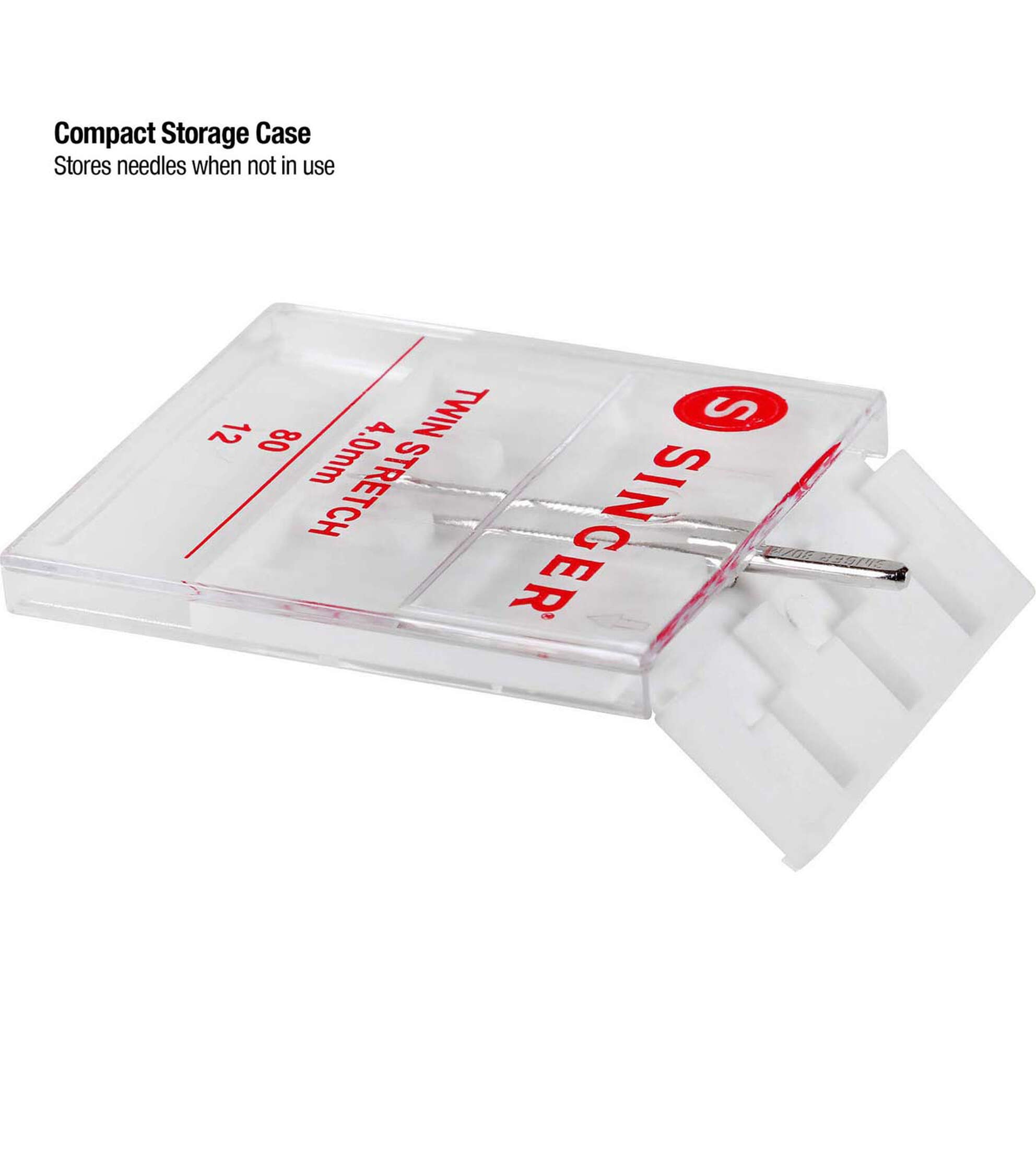 The Singer Universal Twin Stretch Sewing Machine Needle offers a smooth sewing experience while creating two rows of stitches simultaneously. It is designed to prevent skipped stitches when working with spandex, lycra and suede and shredding or breaking the threads. This pack includes one twin machine needle of size 80/11.