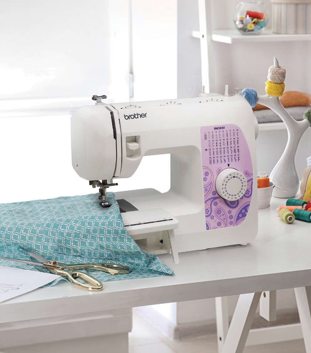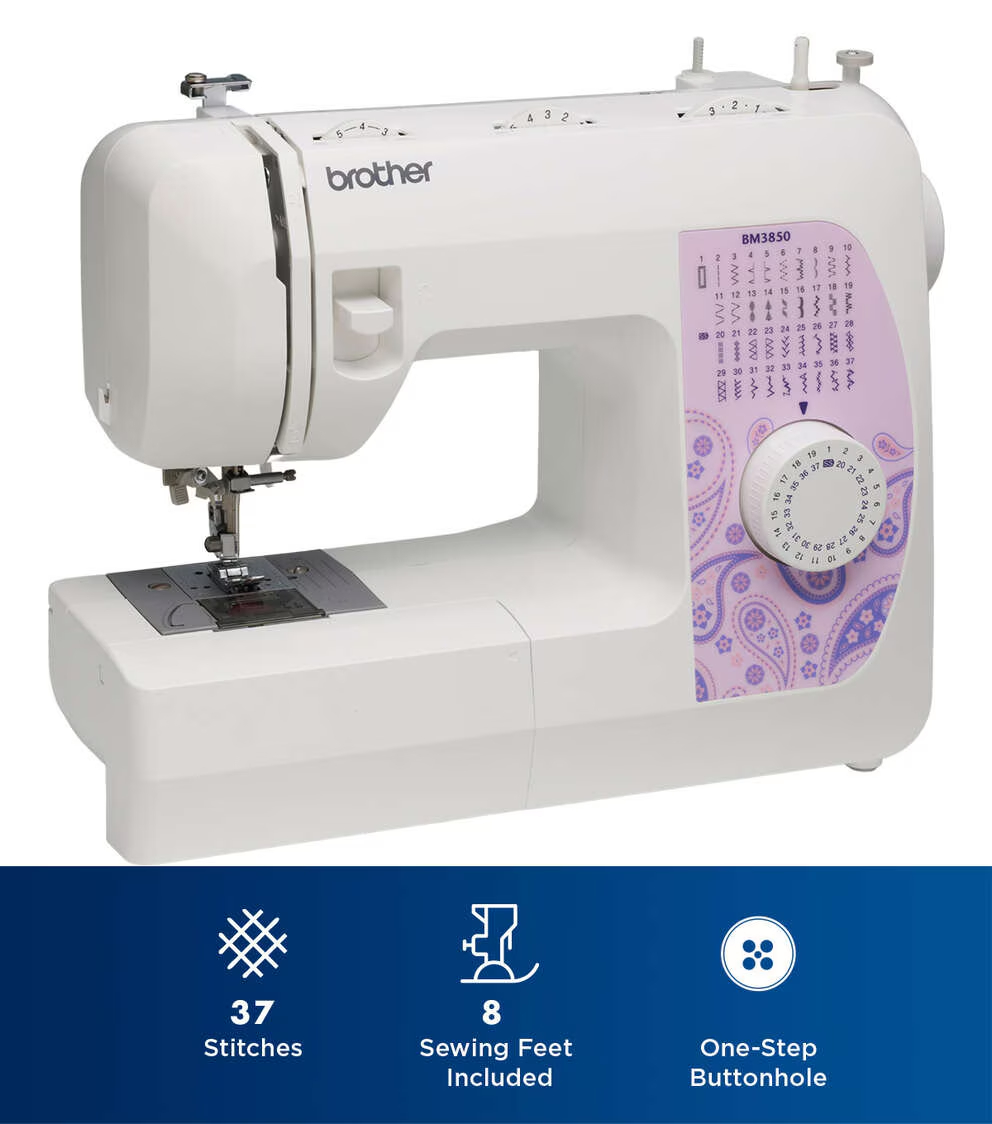 The Brother BM3850 comes complete with 37 built-in stitches including utility and heirloom stitches. This machine features a jam-resistant, quick-set drop-in top bobbin and one step-buttonhole as well as a free arm so you can easily sew cylindrical items like pants and sleeves. Enjoy this full-size sewing machine for travel use or for beginner sewists.