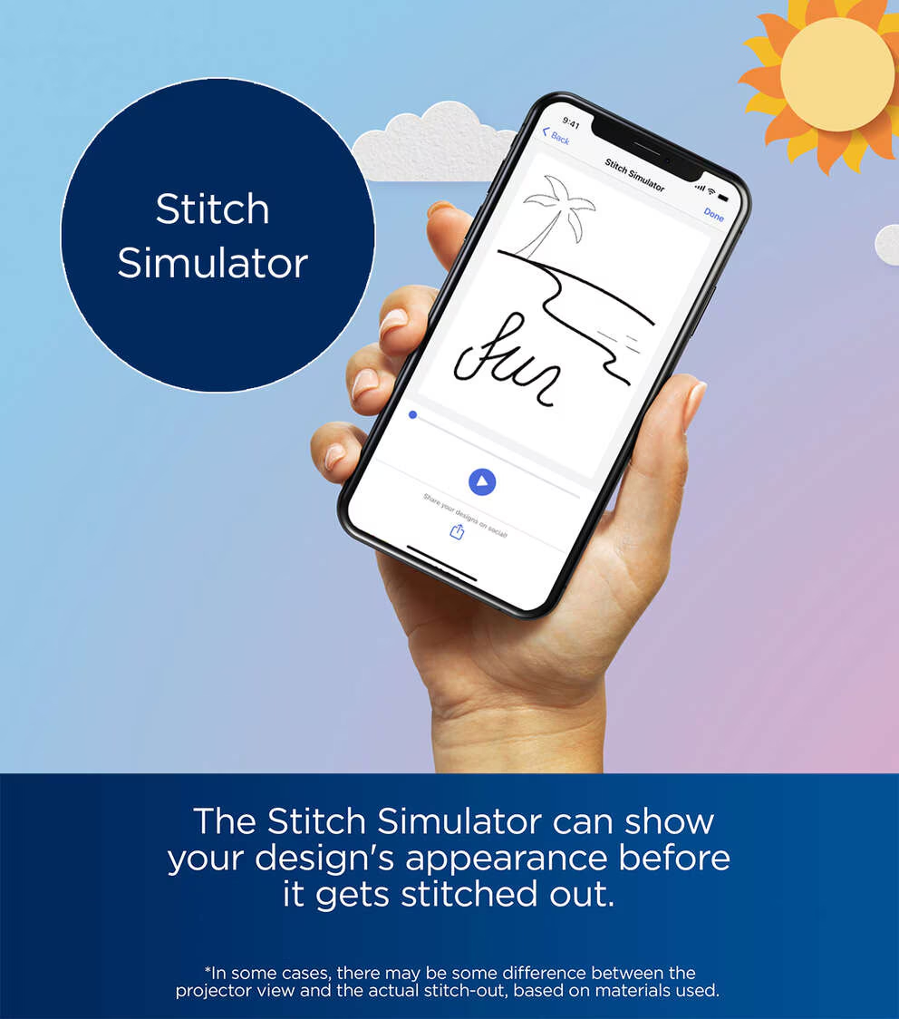 Now there is embroidery for everyone. Introducing the Skitch PP1 Single-Needle Embroidery Machine for when you want to add some individual customization to just about any embroidery project. With its industrial looks, modern design, and connection with the Artspira mobile app(1), the Skitch Single-Needle Embroidery Machine will inspire every embroidery or crafting project. The Skitch Single-Needle Embroidery Machine will look great in your house, hobby room, or any space that sparks your creativity. When you are ready to bring new life to old favorites (vintage clothing, upcycling) or are looking to draw your next great idea on Artspira(1), the Skitch PP1 Single-Needle Embroidery Machine will be ready. To start using Skitch Single-Needle Embroidery Machine, the free Artspira(1) Mobile App is where you begin. Skitch owners receive 500 free embroidery designs within the free Artspira(1) app – designs that are not available to anyone else! In addition to those 500 designs that come with the purchase of Skitch, you can also browse the additional free embroidery designs within the app.  And for endless creative possibilities, users of the Free version of Artspira(1) are allowed to import and save 20 of their designs into Artspira(1) (the max is 20, but you can delete and replace designs too!). Artspira+ Subscription Plan(3) users can import and save up to 100 designs (max 100) in My Creations Cloud Storage.  Artspira(1) lets you design line-art-inspired embroidery drawings right in the palm of your hand with built-in embroidery drawing tools and optional stitch types (straight stitch and zigzag stitch). With these tools at your fingertips, you can design hand-drawn drawings that fit in a 4" x 4" embroidery area and then quickly transfer your creations to your Skitch PP1 Single-Needle Embroidery Machine. The Skitch PP1 Single-Needle Embroidery Machine has Free Arm capability, so adding a design to pants or sleeves, just got more customizable. Plus, the Skitch Single-Needle Embroidery Machine has a Thread Trimming Key that, at the touch of a button, the machine stops to trim both the upper and bobbin thread. Other features include a quick set bobbin, a needle threader, and an embroidery speed of 400 SPM, so adding a personal touch to embroidery projects is fast and easy. With access to embroidery designs and the ability to make embroidery patterns by drawing on your mobile device, there's no limit to your next embroidery project. The Skitch Single-Needle Embroidery Machine is ideal for enhancing readymade goods so you can express yourself with your style.