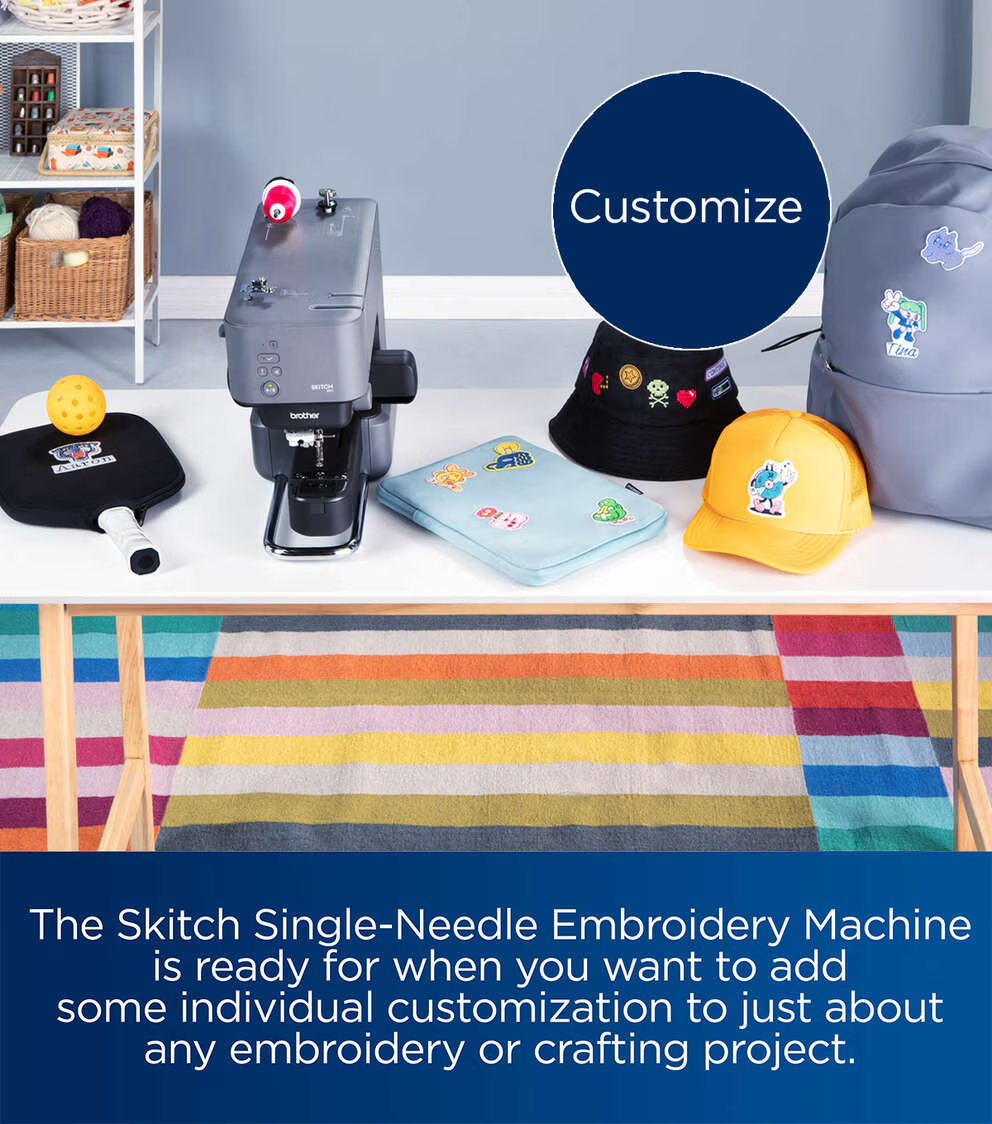 • A new way to embroider: New to embroidery? The Skitch Single-Needle Embroidery Machine is a great way to start your embroidery journey.