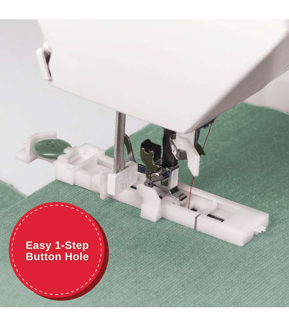 - Automatic One-Step Buttonhole - Just place the button in the buttonhole foot and the machine sews a buttonhole perfectly sized for that button, delivering consistent results every time.