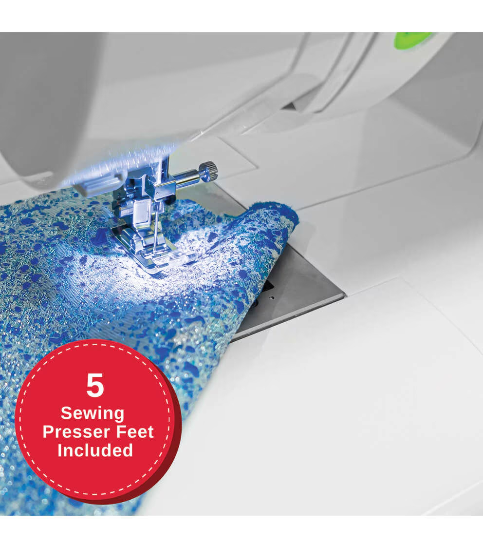 Almost everything you need to get started sewing comes with your machine! Along with essential presser feet, you will also receive easy-to-use specialty presser feet to elevate your projects! Get to know your accessories and push your creativity to the max!