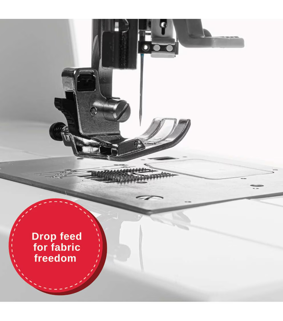 Feed teeth can be lowered for button sewing or free-motion sewing - a must-have for quilters! Simply slide the Drop Feed Lever to lower the feed teeth. Slide it back and turn the handwheel one full turn to raise the feed teeth again.