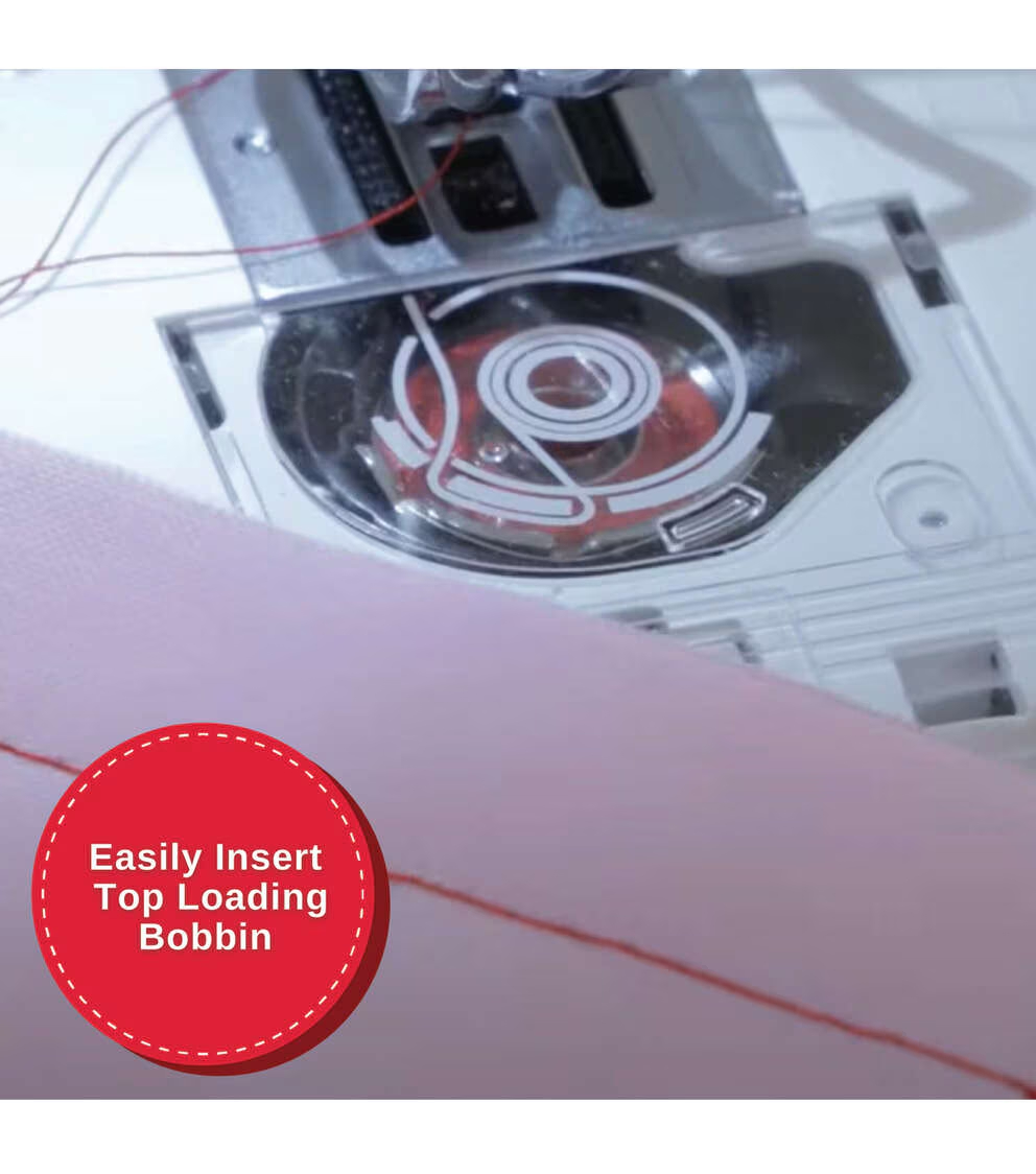 - Top Drop-In Bobbin - Easy to thread and easy to see! The transparent bobbin and cover allow you to monitor your thread supply so you don't run out of thread in the middle of a seam.