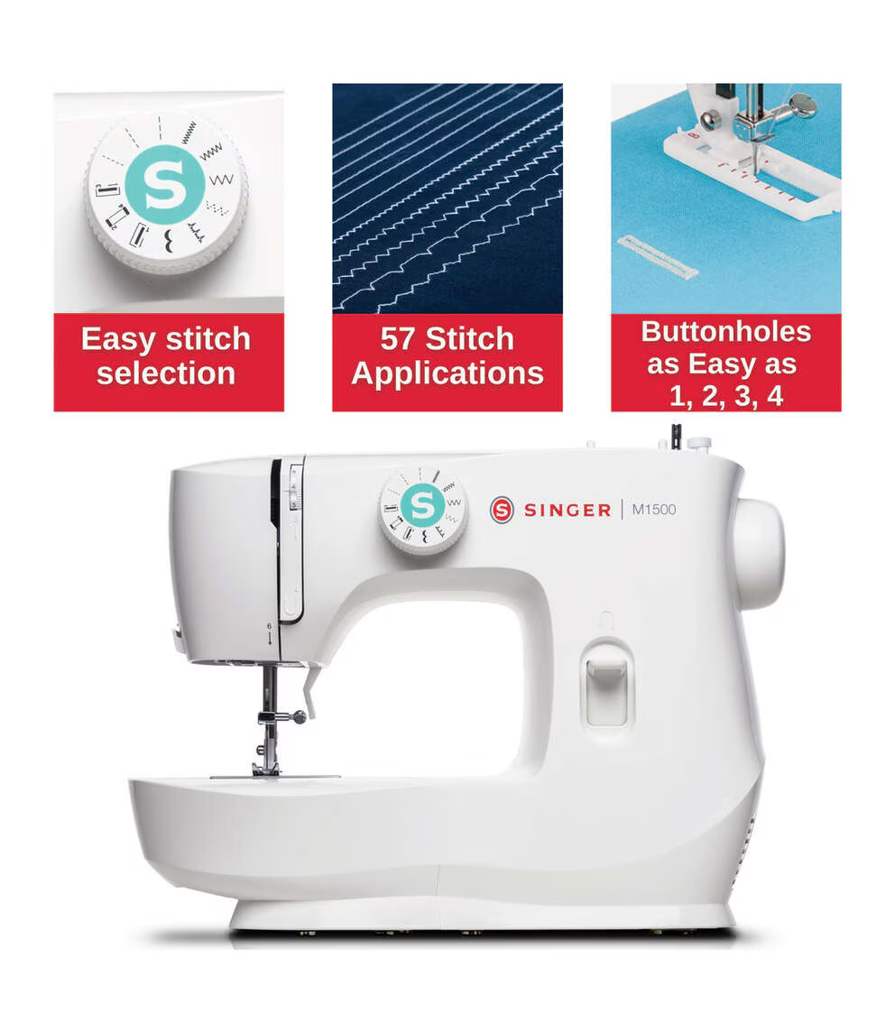 • 57 Stitch Applications - Sew fashions, piece quilts, create crafts or do simple mending with the reliable SINGER M1500 sewing machine. Includes stitches for key sewing techniques - straight stitch, zigzag, blind hem stitch, multi-step zigzag, decorative scallop and a four-step buttonhole.